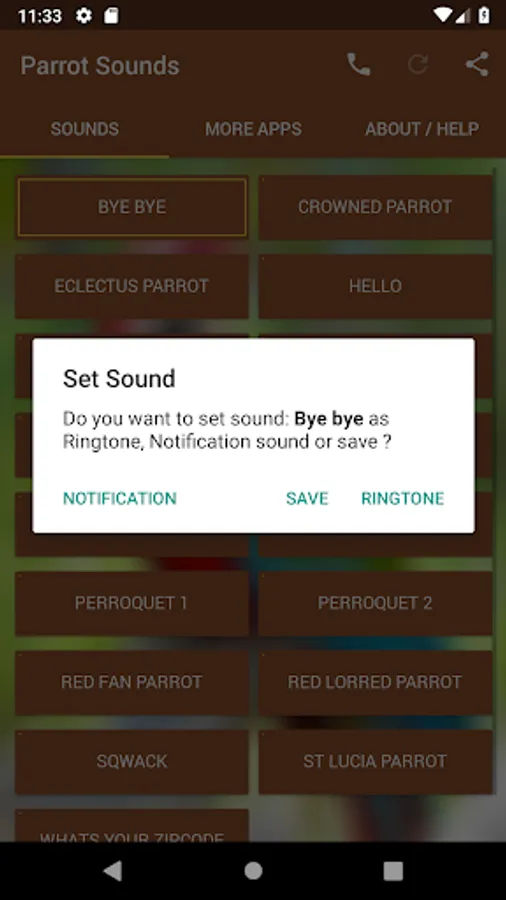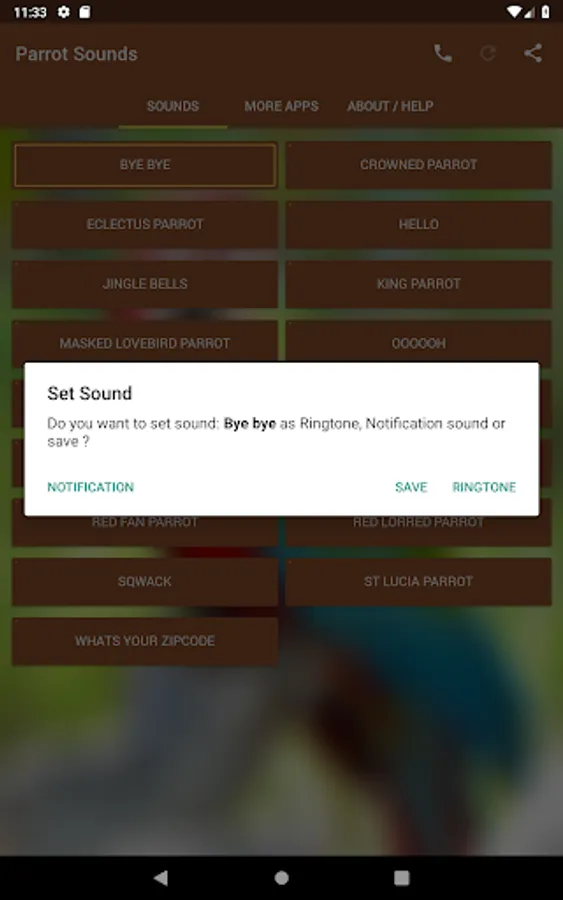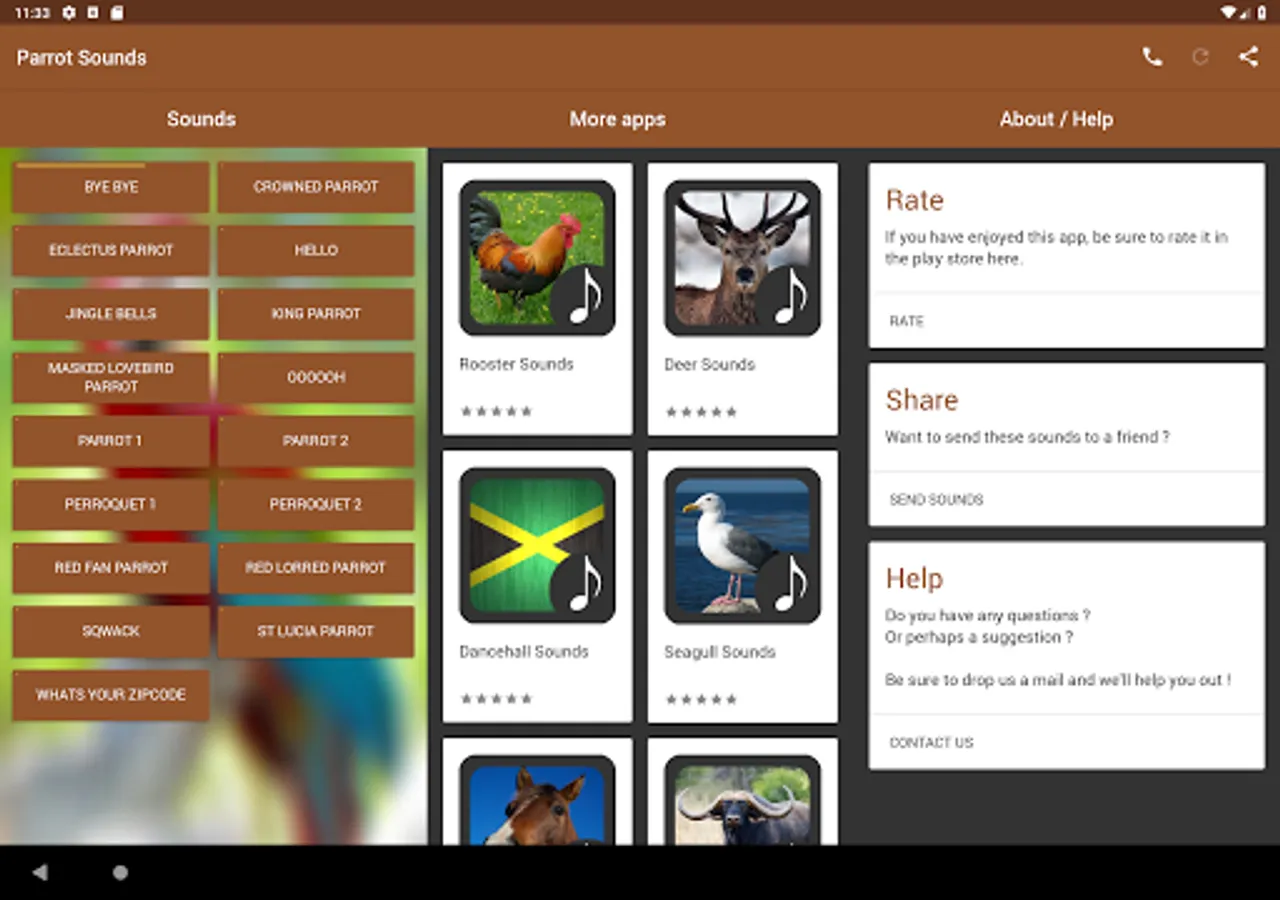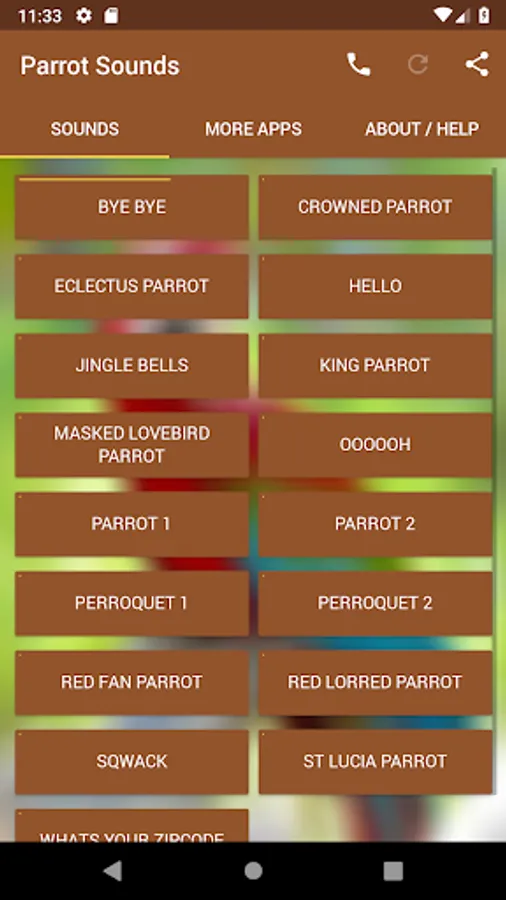 Over 30+ parrot sounds, whatch out he doesn't repeat you.
