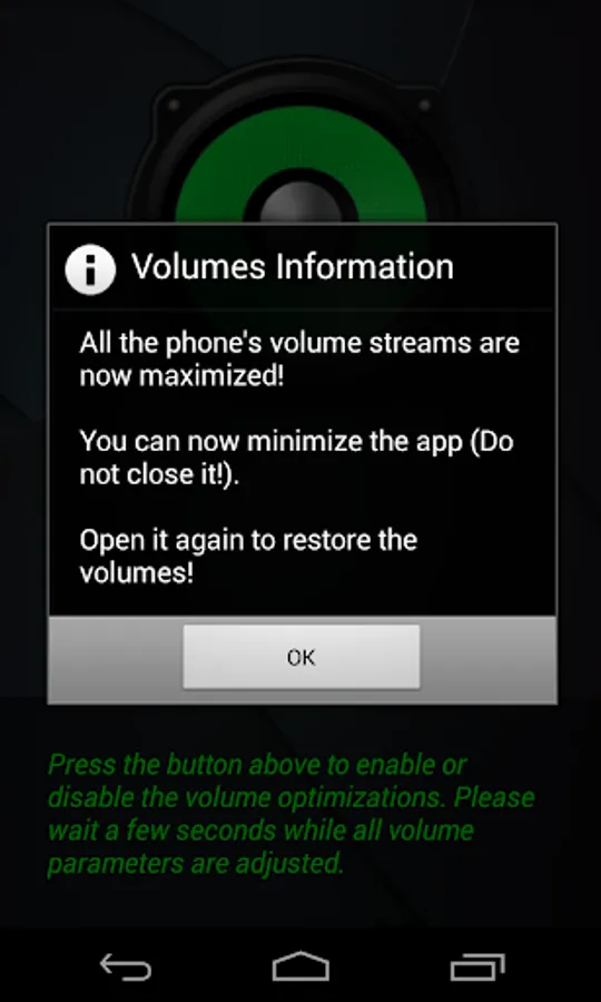 Shortcut to maximize phone's volume. No need to navigate in a maze of menus for that. Just use this volume booster and with just a push of a button make the phone ring louder or listen to music/video at maximum volume.