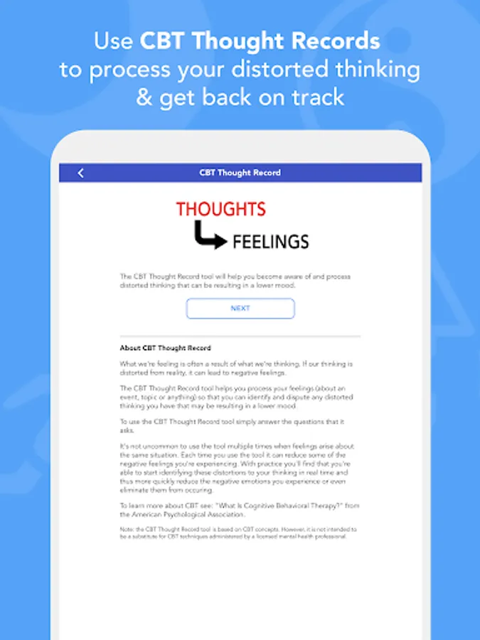 - To process distorted thinking that is causing emotional discomfort using CBT techniques.