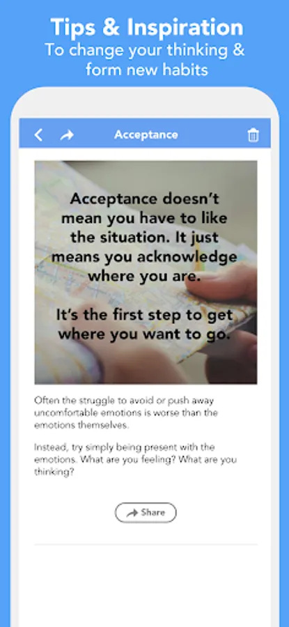 "It's a great way to keep a record of your thoughts about how your health has been each day. And the exercises help you to relax." - user Meg Ellis