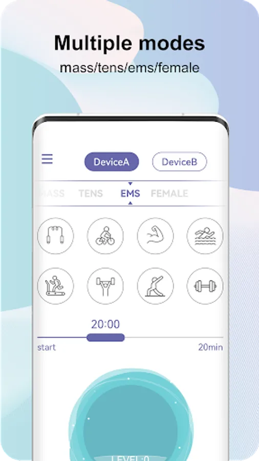 way、pain level、massage intensity、massage time and mode. Bluetooth connection to do effective massage and treatment.