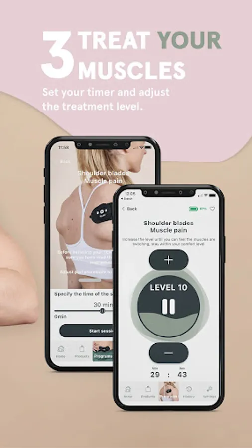 TENS by Flowlife offers three treatment categories for precise pain management. Reduce tension in muscles and joints with our RECOVERY programs. Treat muscle pain after exercise and long workdays with our MUSCLE PAIN programs. Relieve menstrual pain with our six customized PERIOD PAIN programs. Through the Flowlife TENS app, you can easily control the treatment you are looking for and how long you want to treat the painful area. TENS by Flowlife is a complete experience that will change your everyday life and increase your quality of life. TENS by Flowlife enables an active life.
