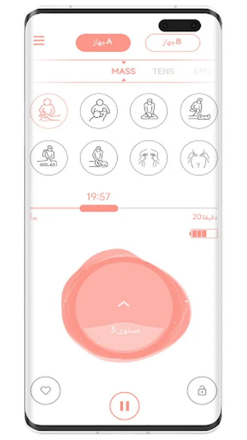 Application with medical massage products to use, adjust the massage parts. Treatment method, pain level, massage intensity. Massage time and placement. Please connect bluetooth to do this effectively. Massage and therapy.
