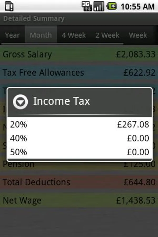 The tax results can be split into detailed tax bands by clicking on the tax summary.