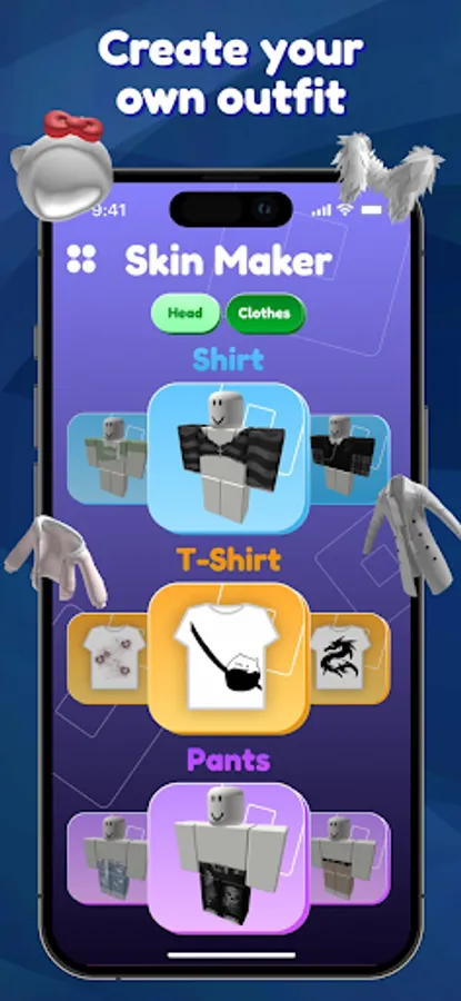 Outfit Studio for Roblox Game - do you want to create your own custom skins for your favorite game? You have come to the right place! With this skin maker, you can create thousands of possible combinations. Outfit Studio for Roblox Game is an application with an advanced graphics editor that allows you to create new personalized skins for the online arcade platform. Besides the fact that you can change the components of the skin: legs, arms, head, you can also add different accessories and change the style.