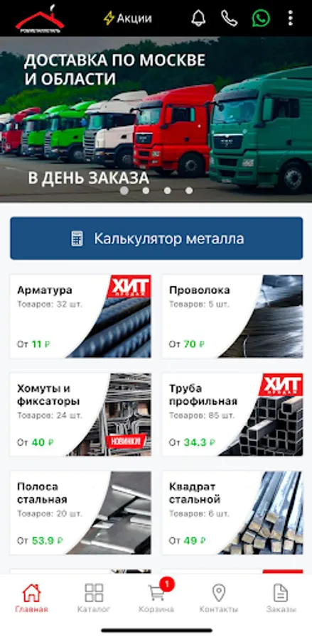 What we sell: fittings, profile pipes, round pipes, corrugated board, metal meshes, metal corners, channel bars, metal sheets and much more.