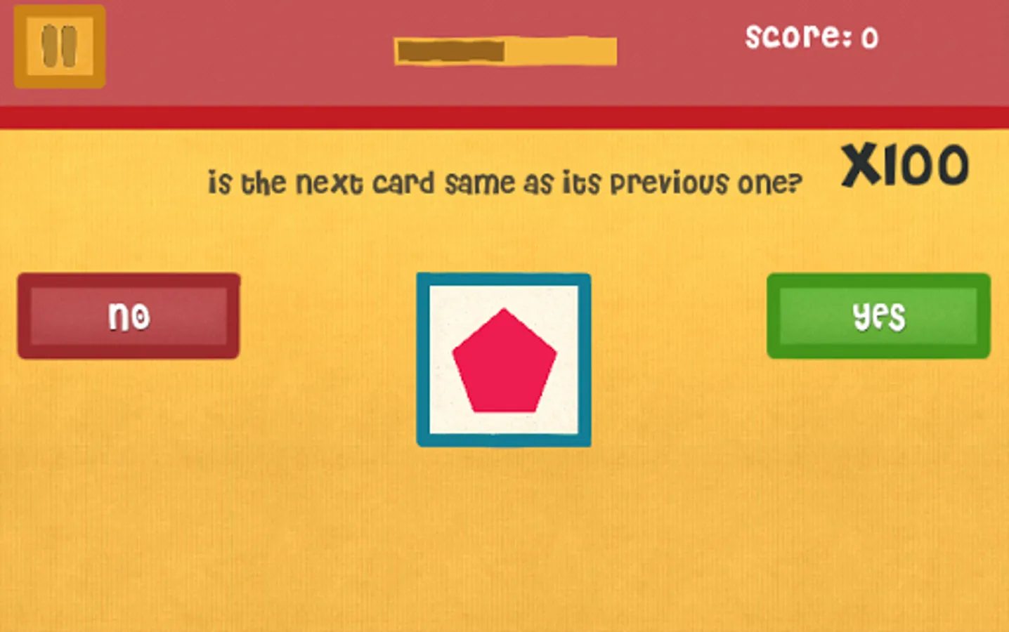 Our brain needs a daily challenge to stay focused and work effectively. Train your brain in this tile comparing game in which you have to be fast, focused and ready to press the button. You each input is collected and showed to you on a graph where you can check your daily progress. And remember, things are never what they looks like. Use this dialogue while playing.