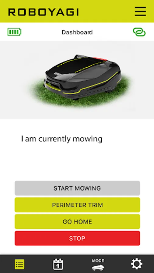 The ROBOYAGI™ app will keep you updated with alerts and status of your robotic lawn mower.