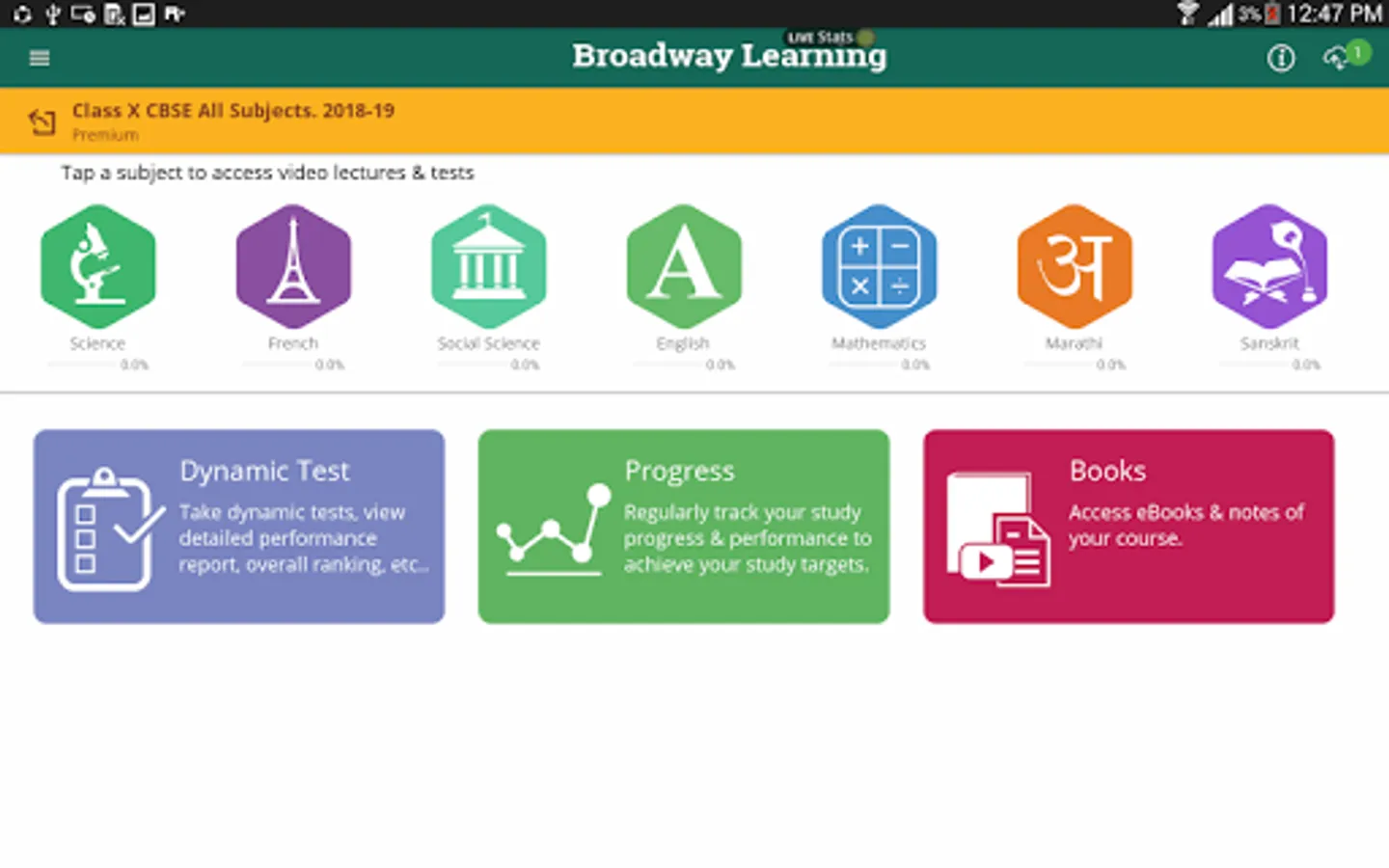 With the launch of this learning App, Broadway Public School, Manal are poised to enter a new era of technology enabled learning. The App is available exclusively to the students and teachers of Broadway Public School, Manal. Through this Learning App, you can access video lectures by expert teachers and take tests/assessments after watching the video lecture and/or after completing a chapter, whenever you want. These video lectures will help you in understanding concepts and solving question papers. Since the complete course videos are available with you 24/7 you can study and revise anytime throughout the year. The content is well organized by chapters and simply structured for easy navigation. Each chapter is broken into small modules of 5 to 7 mins each to keep the lectures interesting and to the point. The relevant topic is explained thoroughly. Animation and presentation have been included so that you can understand concepts better. You can even add notes to the video timeline and assess your performance with tests at the end of every chapter (EoC) and module (EoM).