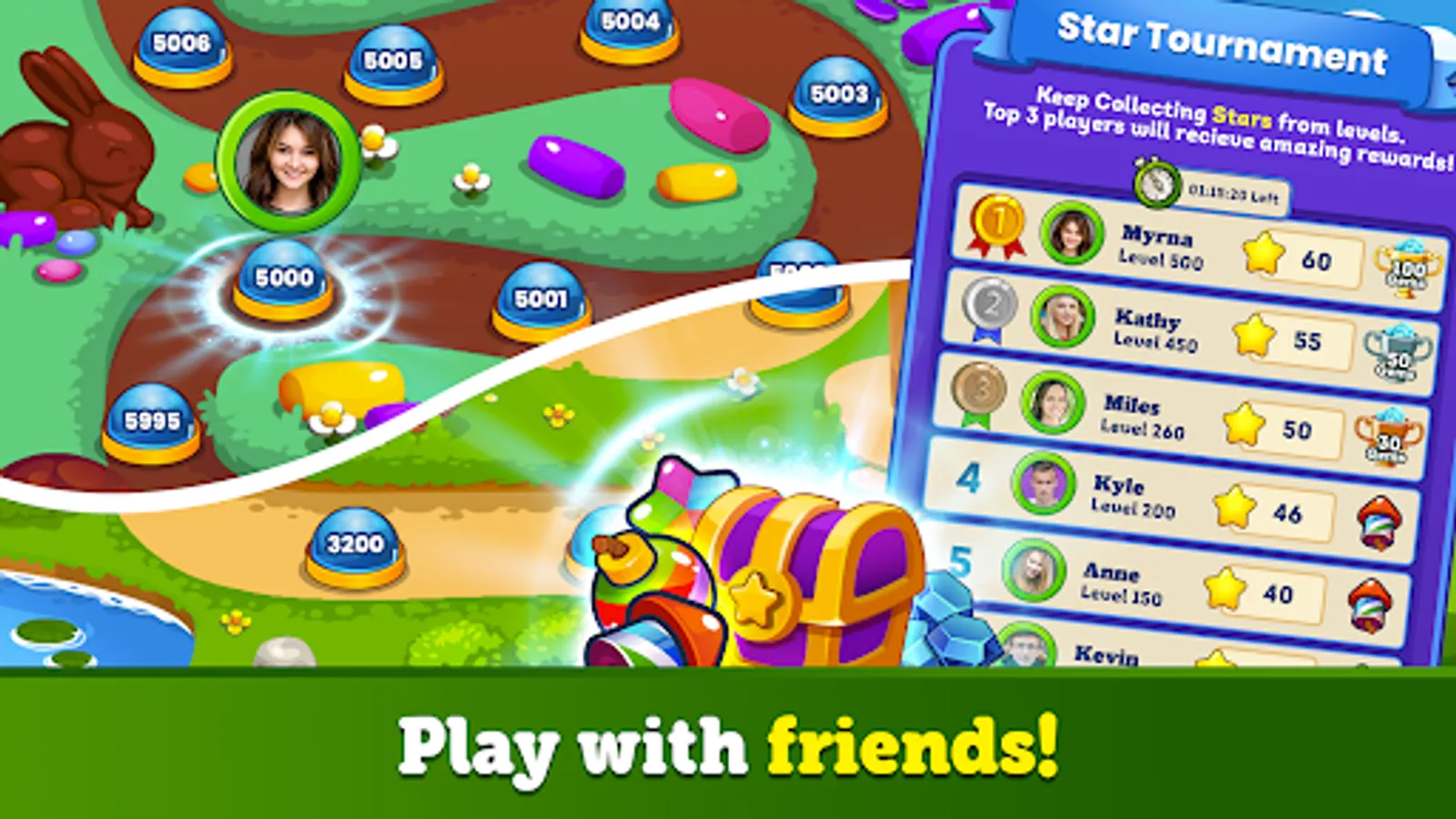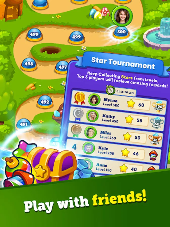 Play FREE forever with all the free bonuses, boosters, and lives! Take on this tasty Easter adventure alone or play with friends and family to see who can get the highest score! It's the best match 3 in a row game!