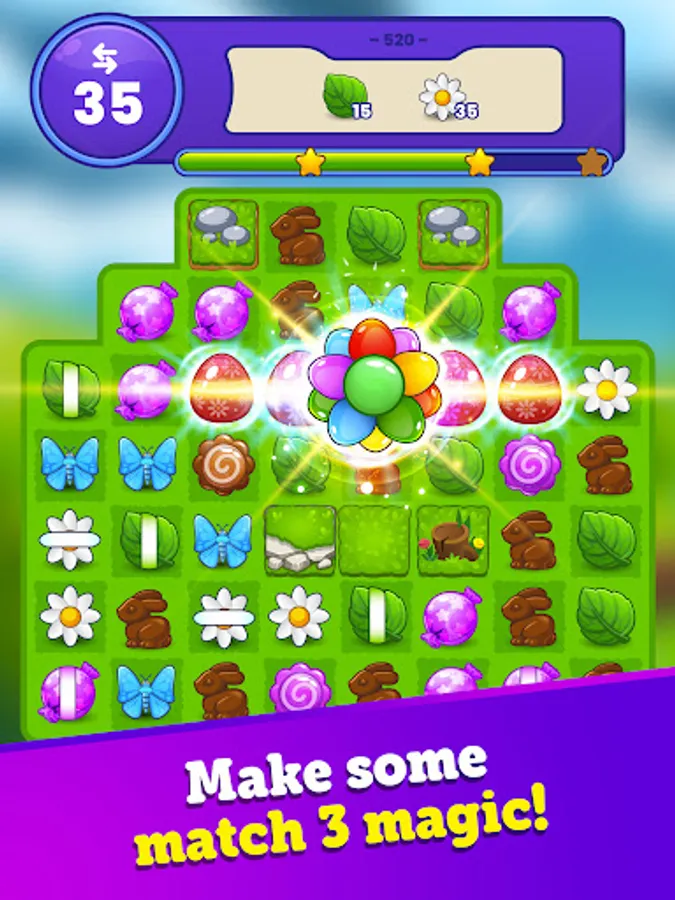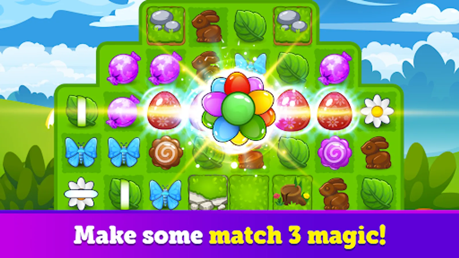 • Easter Magic is addicting and FREE to download and play, however some game items such as extra moves or lives can also be purchased for real money. This match 3 game comes loaded with free bonuses, awards, and rewards so the skilled player can play free forever!