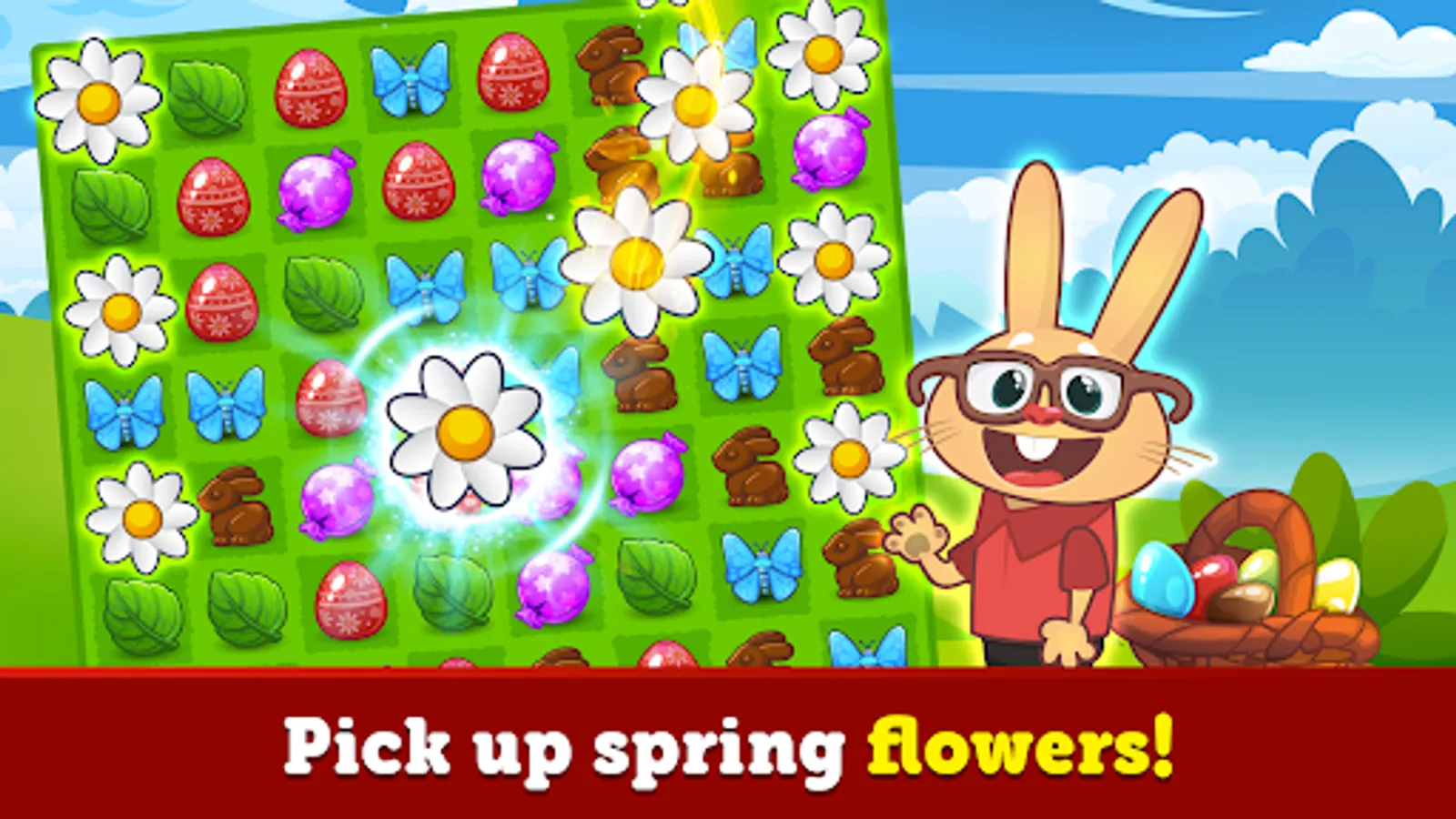 Go, Easter Bunny Go! Clear the board quickly with a cupcake boost!