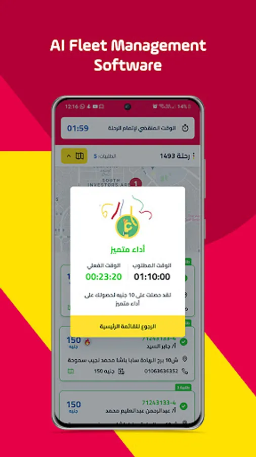 Everything gets automated; the orders, instantly grouped. Routes, automatically optimized, orders dispatched to fleets right away. Even the team is managed automatically. On the ground, we have our unique AI performance system that measures the exact agents' performance in each task immediately.
