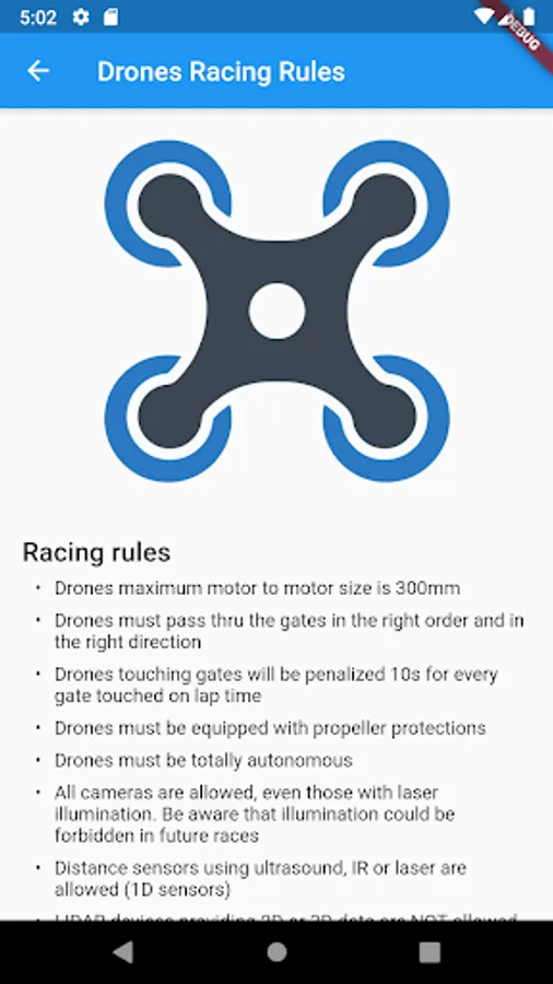 - Display of the rules of the race