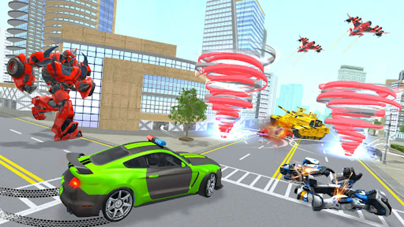 Welcome to the world of robot war games, where evil robots attack the futuristic city. You have Robot Tornado transformation game that was made to destroy the wave of alien robots that are ruining the peace of the country. Become a real robot superhero in Real Tiger Robot Transforming game and fight the robot mafia with an animal robot simulator.