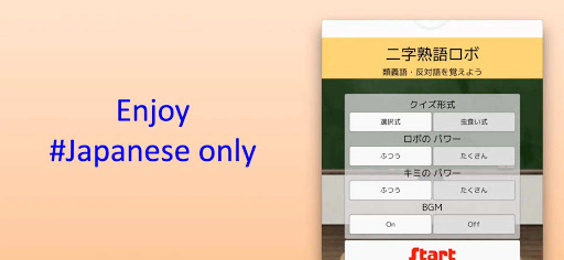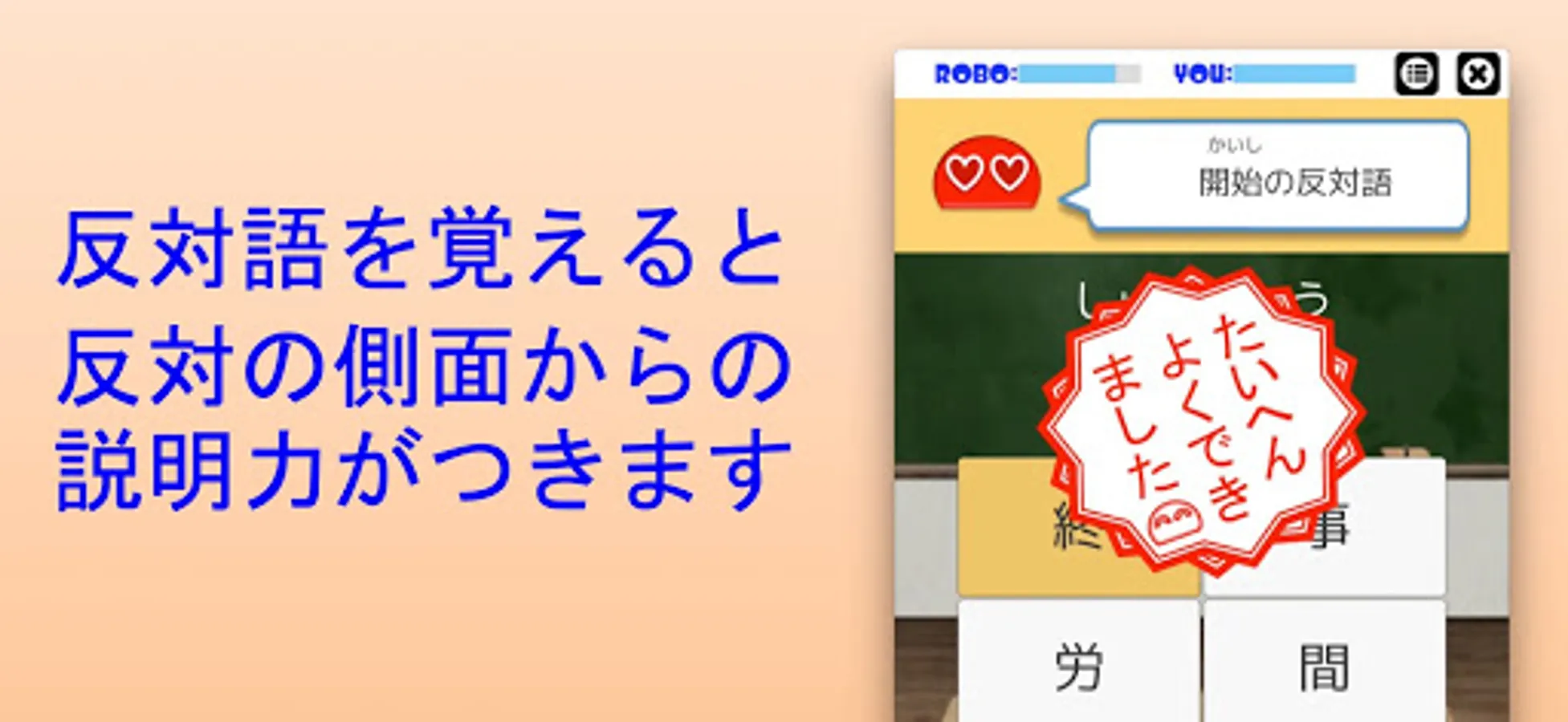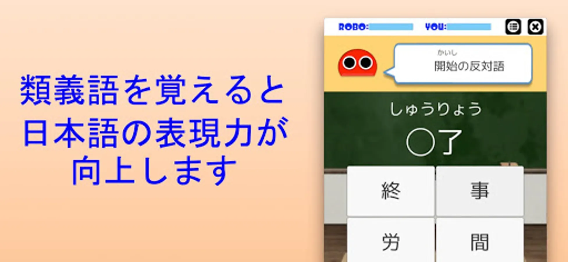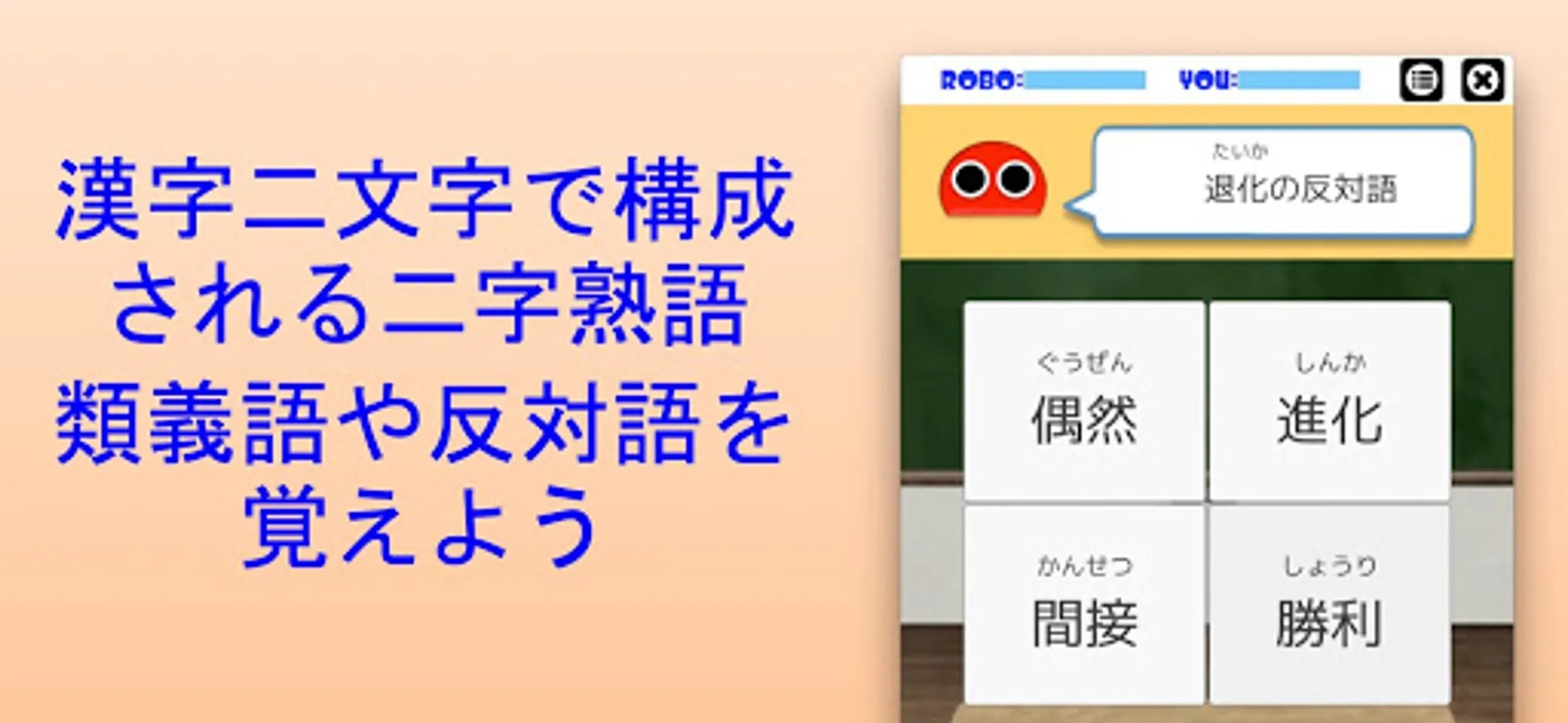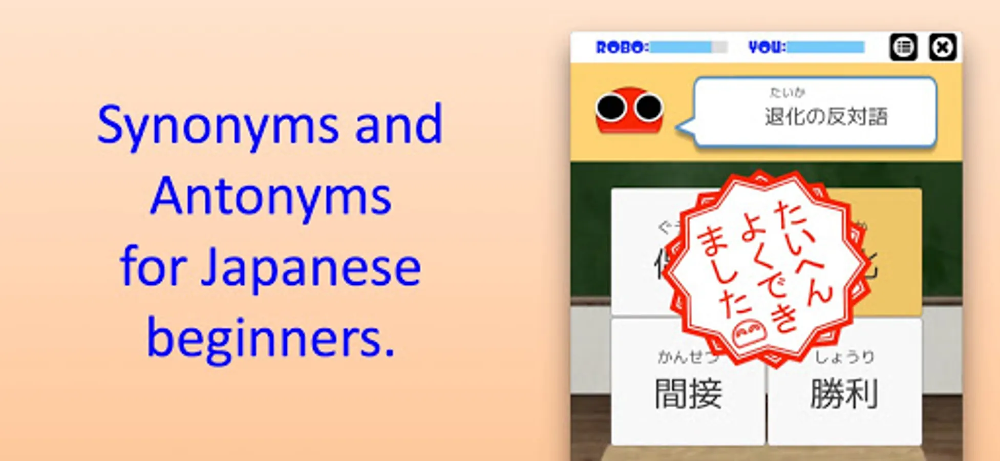 This app has a lot of synonyms and antonyms of two-kanji idioms for Japanese beginner.