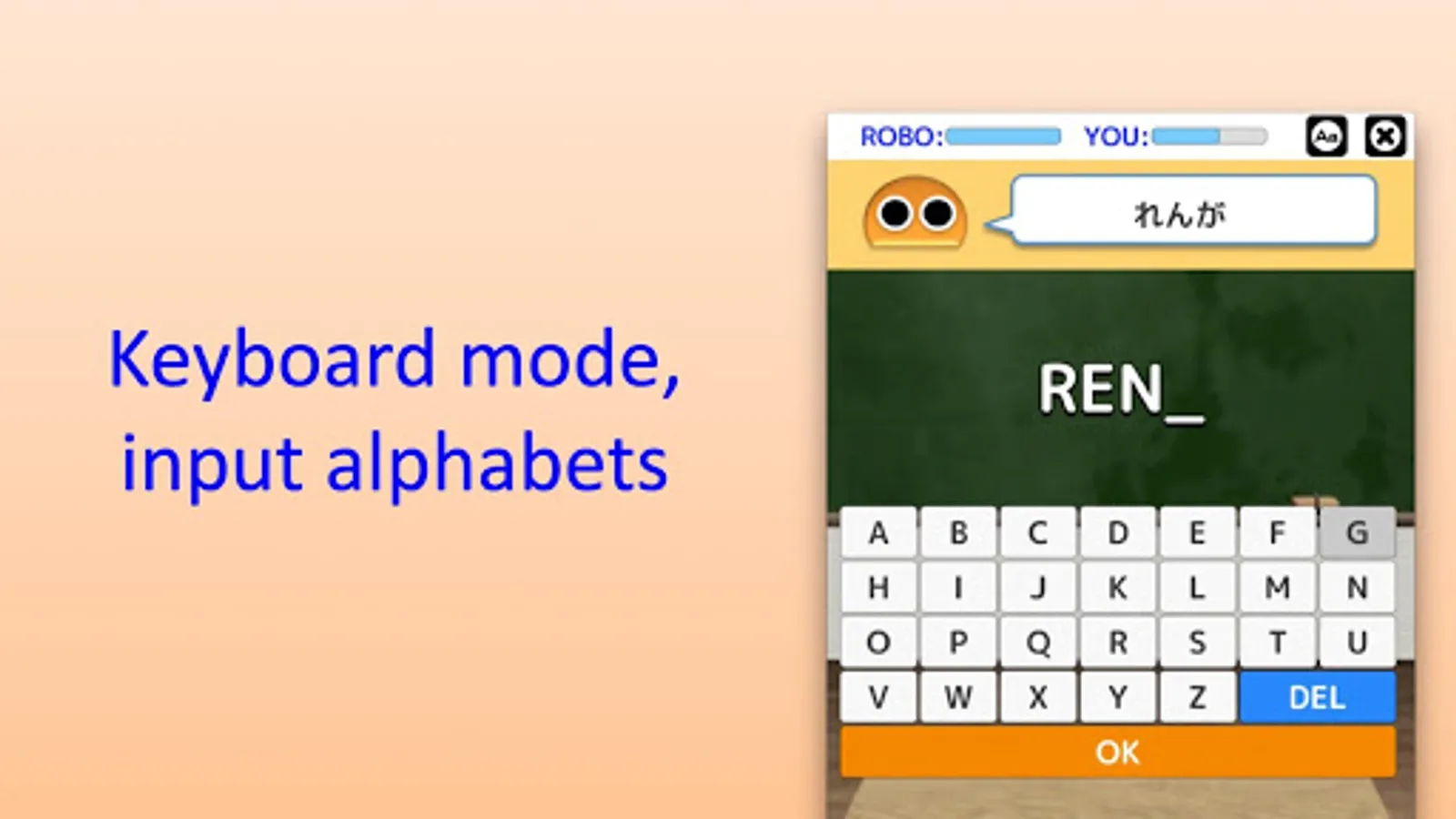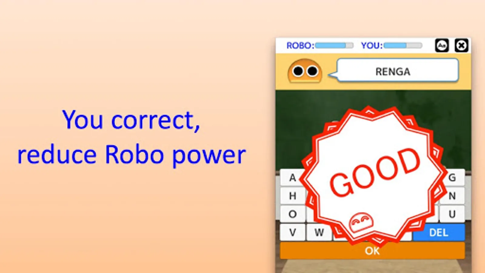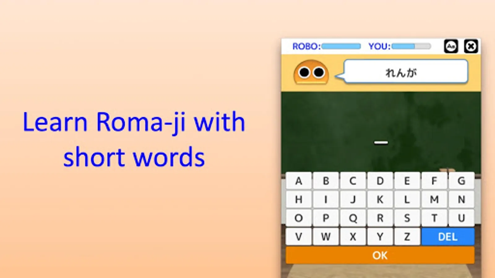 Beat the Robo with Roma-ji(Roman alphabet). Let's learn Roma-ji to communicate with Japanese people!