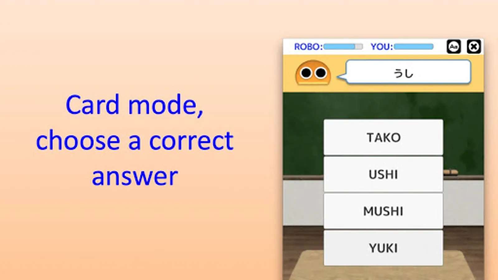 In 'Cards' mode, choose an answer card which has the right roma-ji the Robo asked.