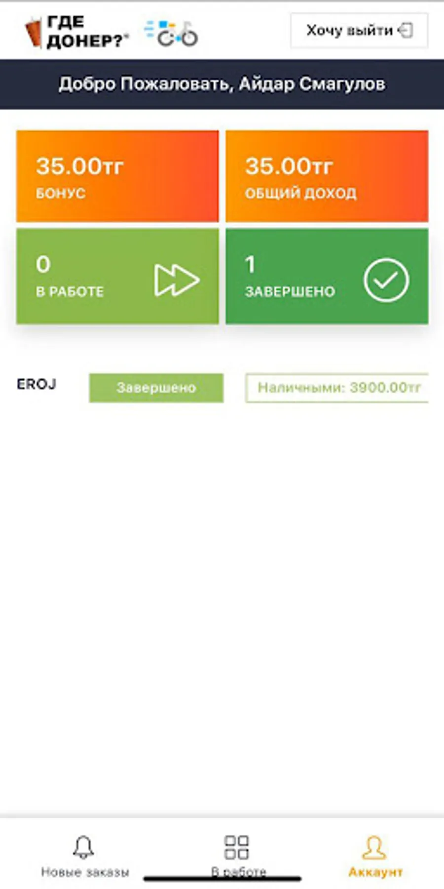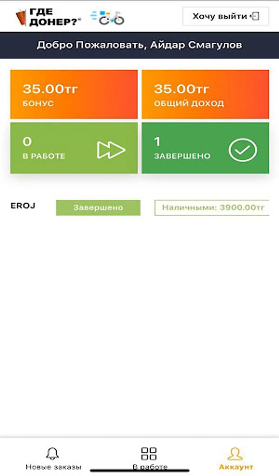 All couriers who have passed verification on the service will be given a login and password to access the application "Where Doner - Courier"