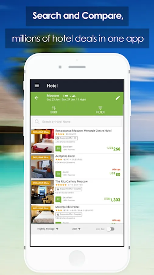 Are you looking for the best travel deals? TravelMate is here to help you find the very best flight and accommodation deals on the market. Once you install the app you can easily compare hotel and flight costs for thousands of companies all over the world.