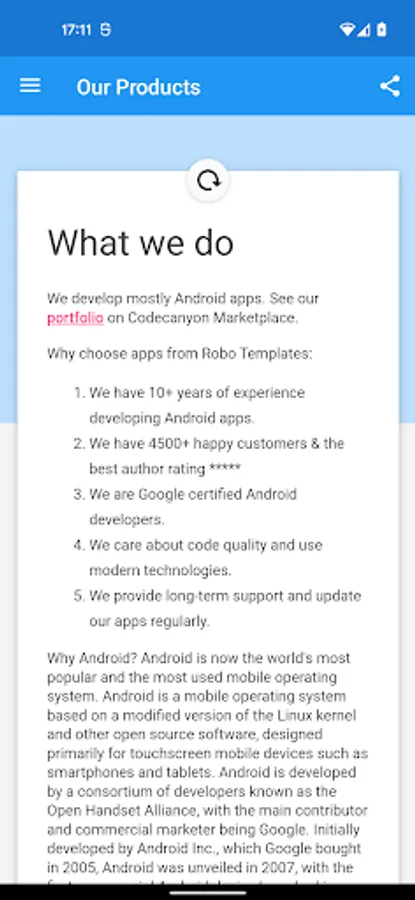 We have a lot of experience with developing Android apps. Our priority is to create top quality products with beautiful design, write a perfectly clean code and make apps easily configurable and customizable. We are following Android Design Guidelines and permanently watching new trends.