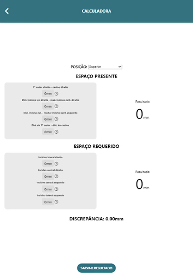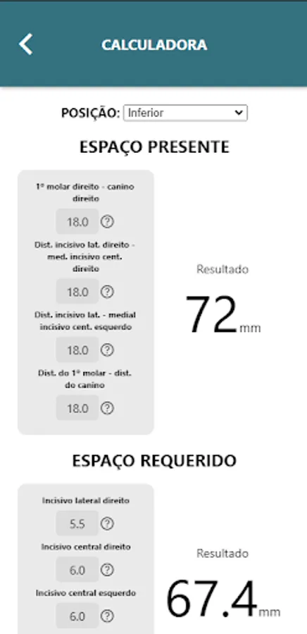 This APP is a calculator that uses the Moyers table for calculations of present space and required space, in addition to the discrepancy.