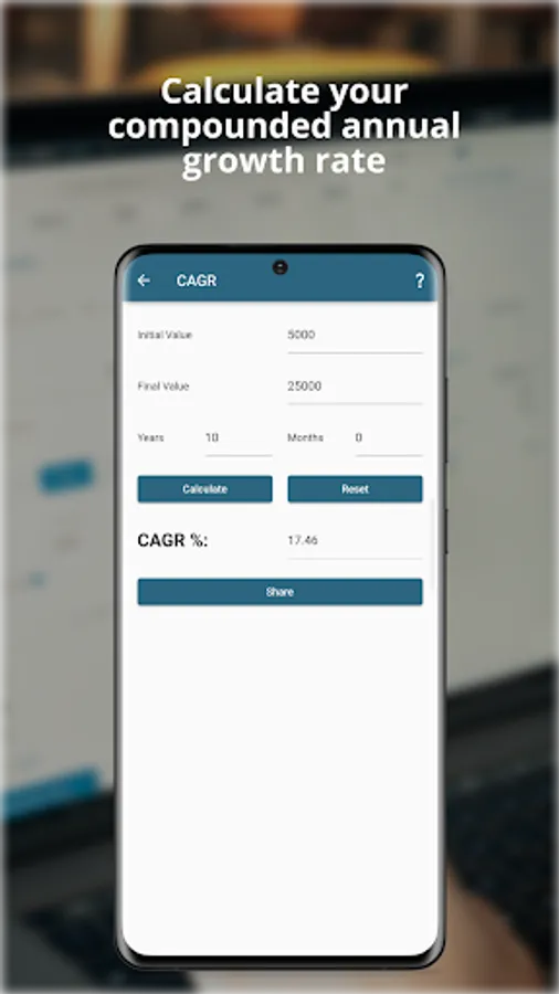 Easy to use financial calculator at your fingertips. CAGR | Future Value | Present Value.