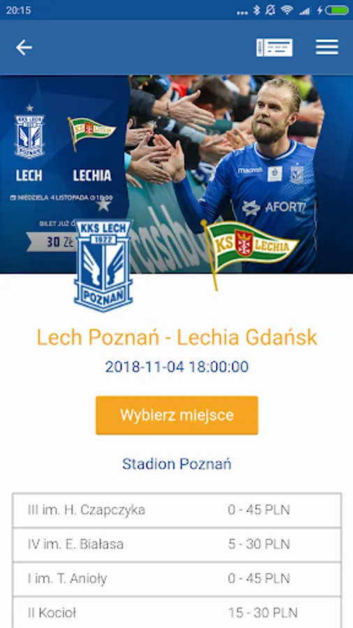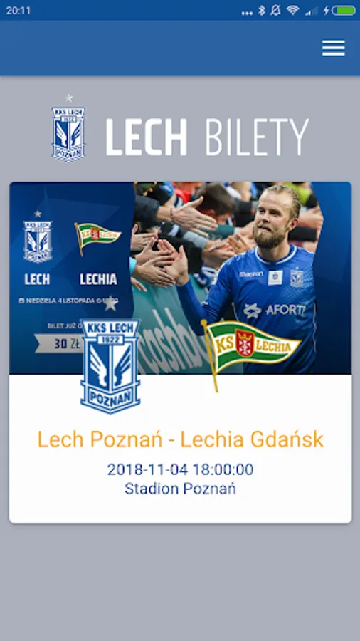 The mobile version of the official Lech Poznań portal - bilety.lechpoznan.pl