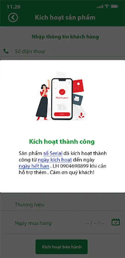 Activating product warranty, allowing customer's purchase information to be recorded on the system, ensuring the interests of consumers.