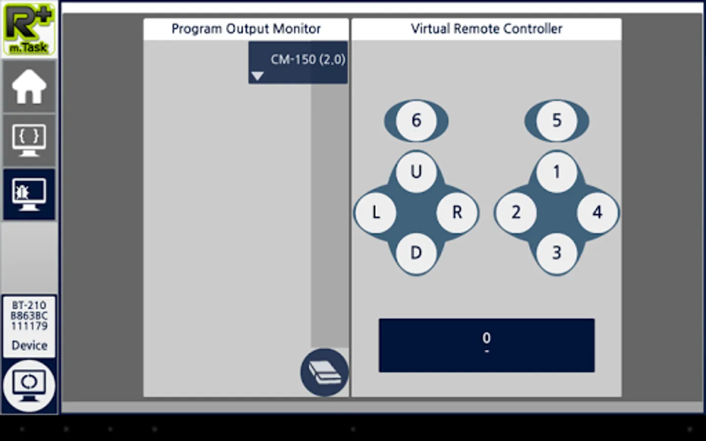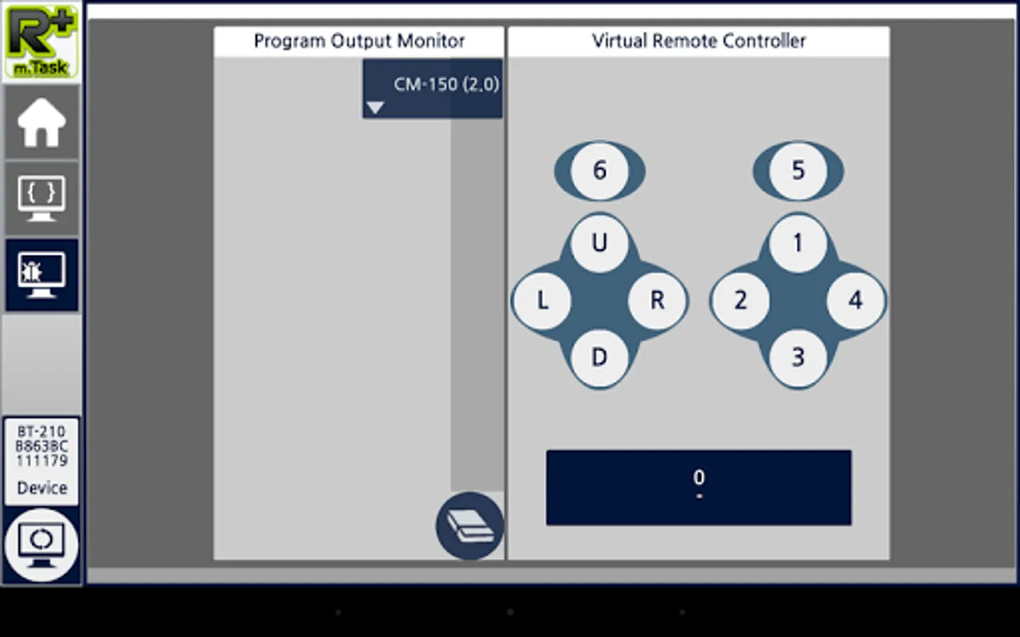 Once connected via Bluetooth, you can monitor the program output on the screen