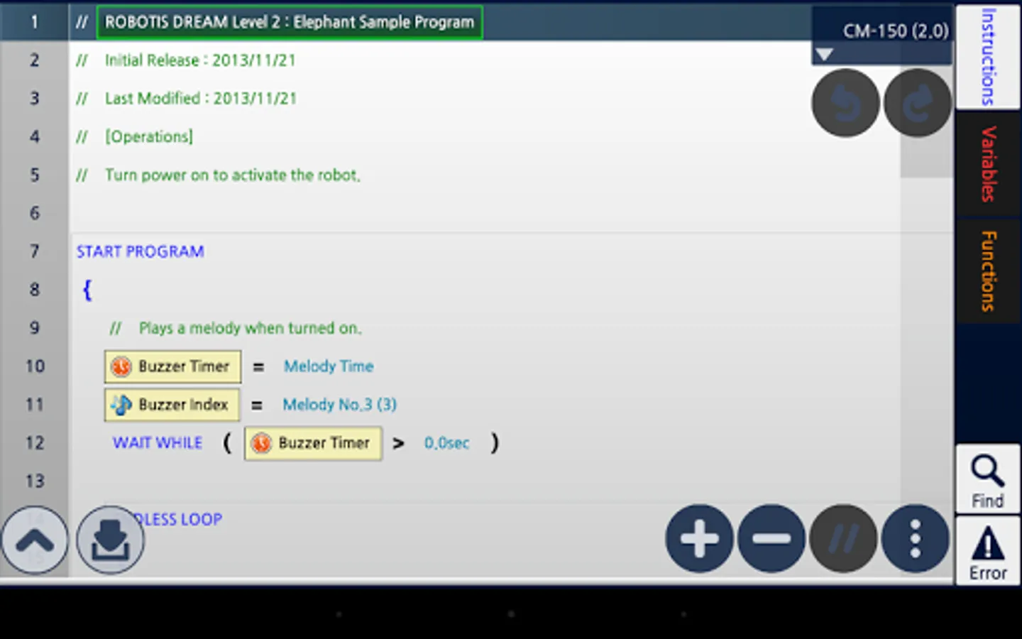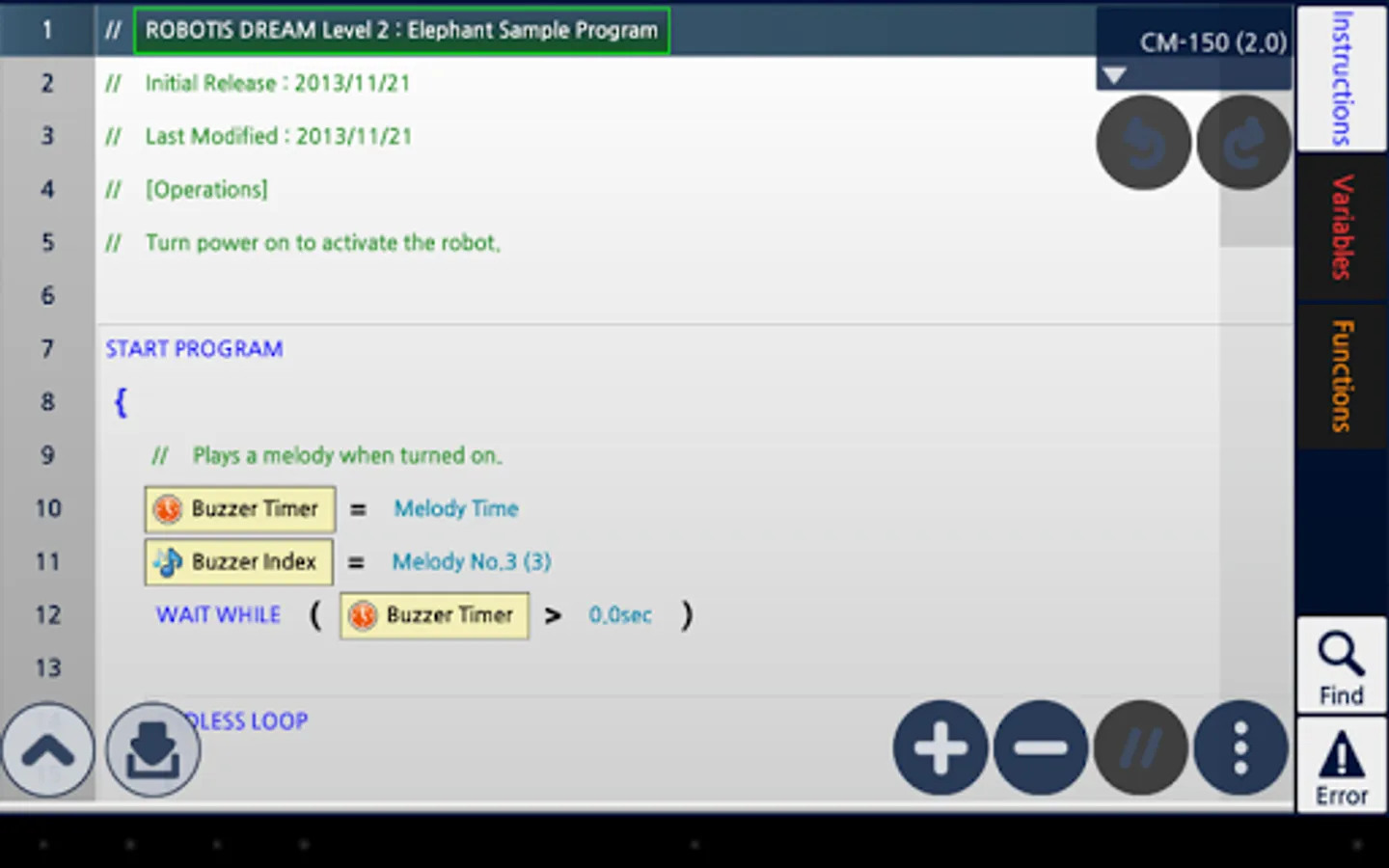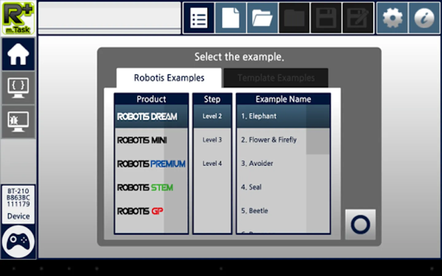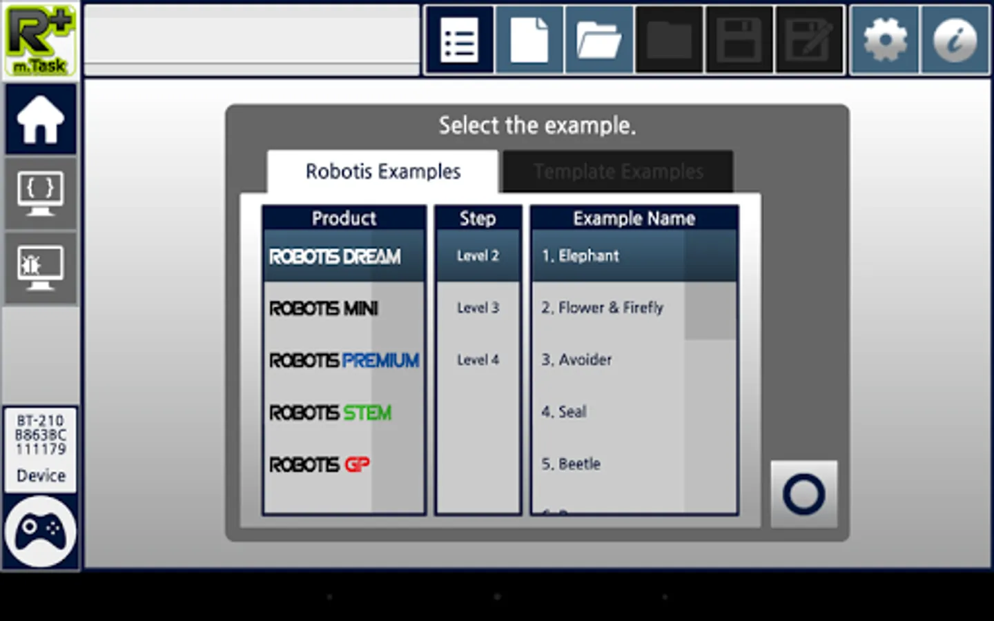 R+m.Task 2.0 is a software designed for mobile device to program robots (DREAM, SMART, STEM, BIOLOID, MINI) developed by ROBOTIS Co., Ltd.