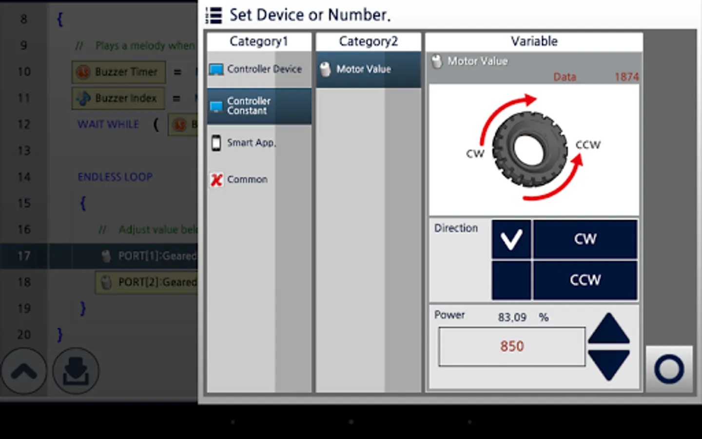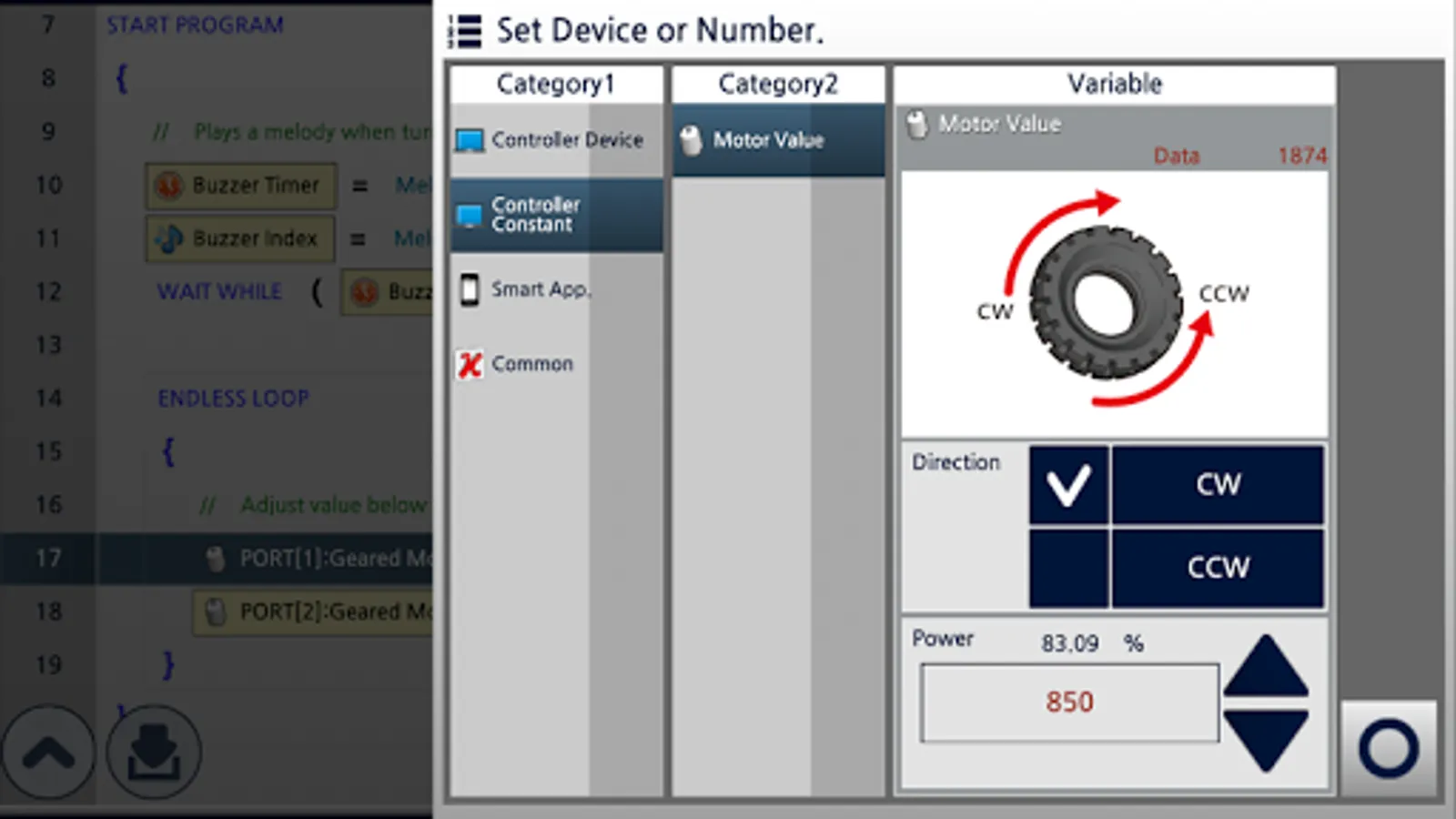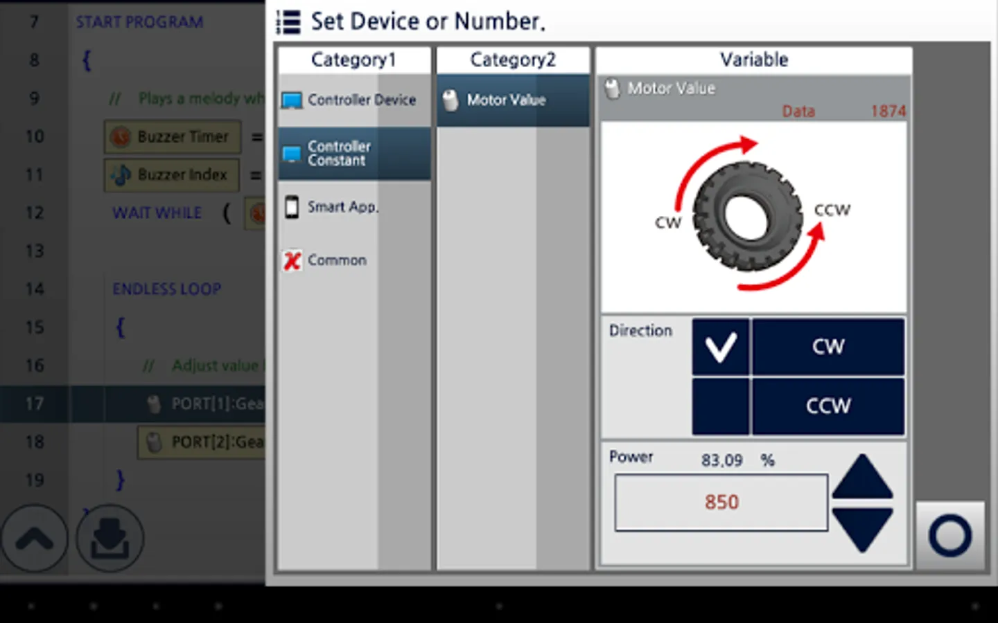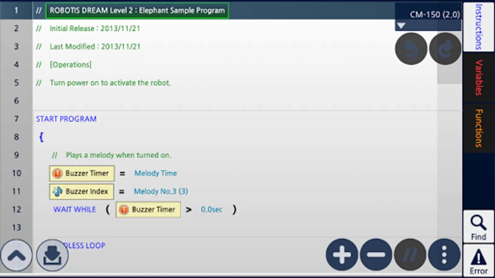 R+m.Task 2.0 is a software designed for mobile device to program robots (DREAM, SMART, STEM, BIOLOID, MINI) developed by ROBOTIS Co., Ltd.