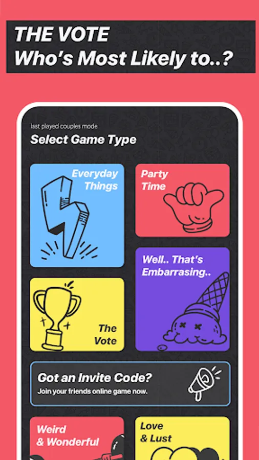 Voting with Friends is the ultimate online ‘Most Likely’ game. The perfect party game all your friends will be talking about, hopefully for the right reason.. maybe for the wrong!