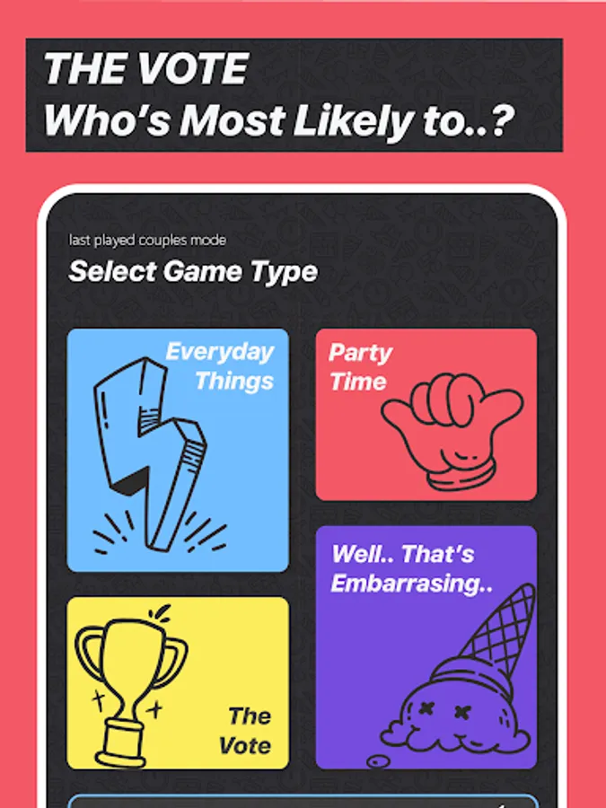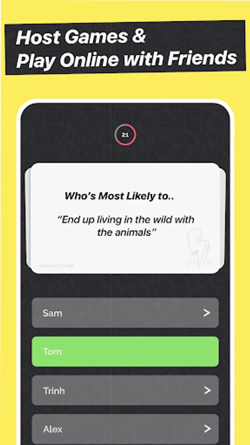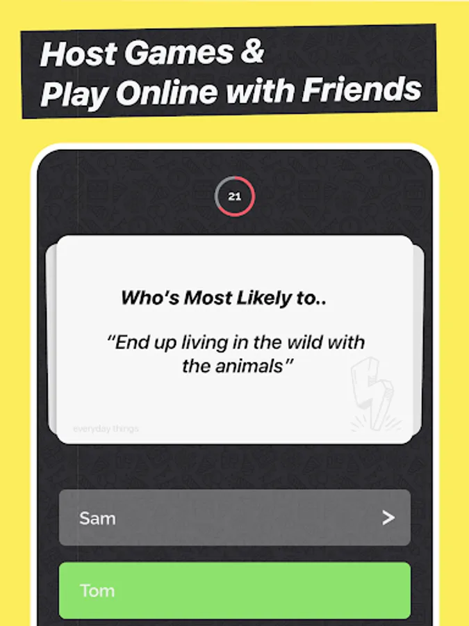 Most Likely can be played as a group party game, just for some fun with friends from the comfort of your own home or online in your Discord room. It's GUARANTEED to start and end with lots of laughs all around!