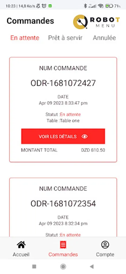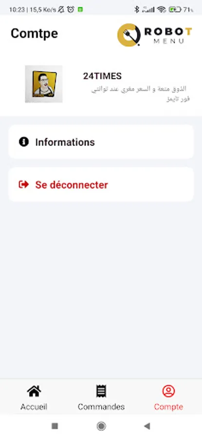 Robot menu - restaurant