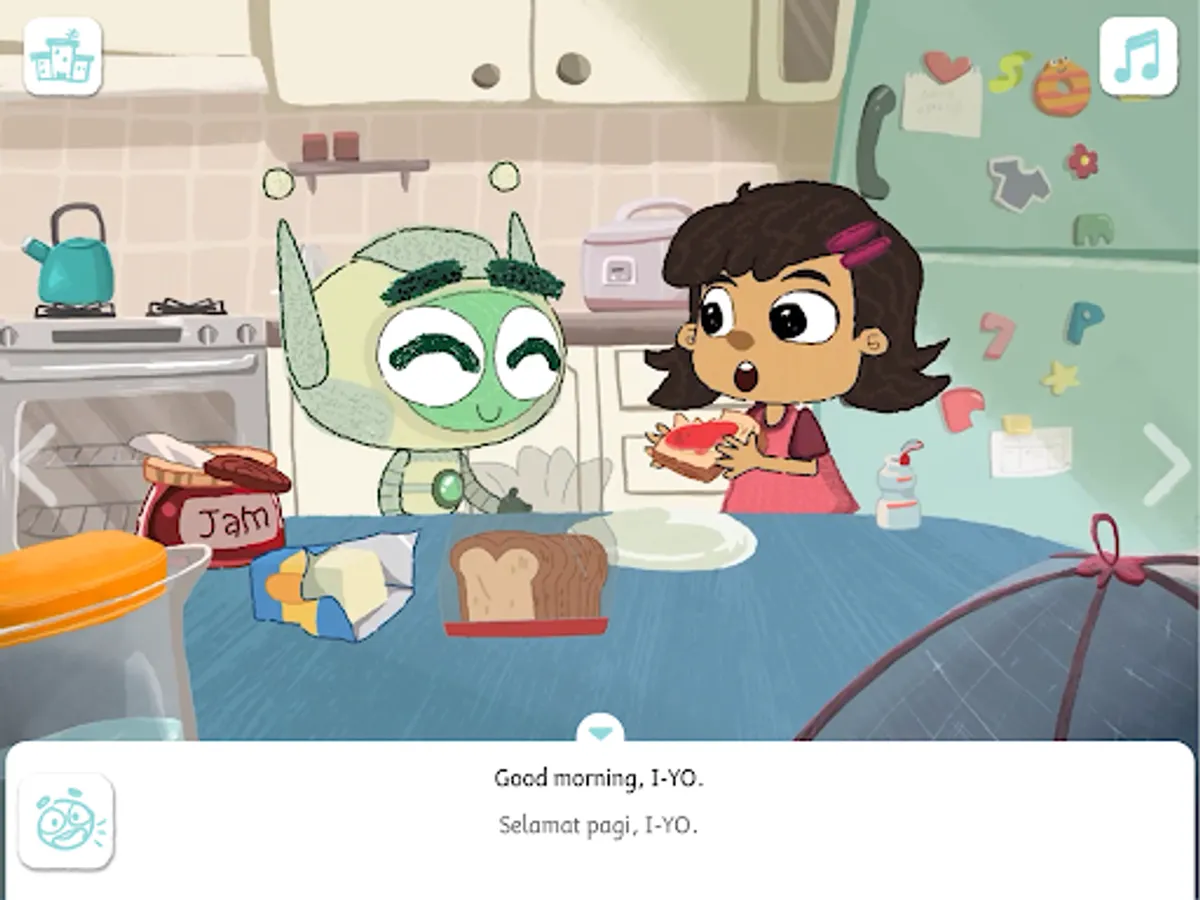 The app features three different Singaporean families of Chinese, Malay, and Indian descent that can be selected as the main cast for the stories, along with I-YO. The stories can then be enjoyed in either English or the respective mother tongue of the selected family (Mandarin, Malay, Tamil).