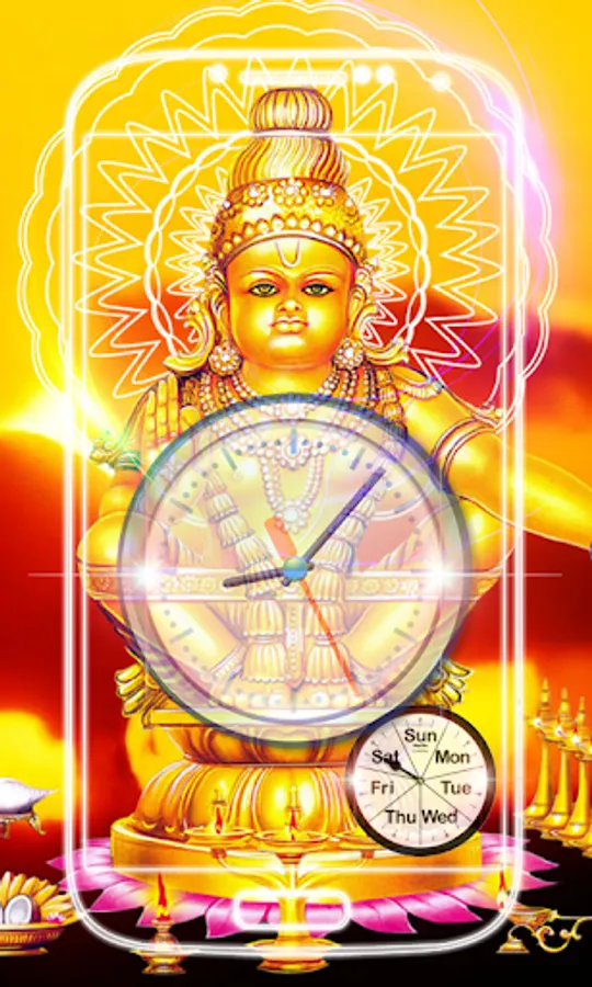 Lord Ayyappa clock Live wallpaper contain different types amazing clocks and awesome backgrounds.Ayyappa Clock Live Wallpaper is highly customisable live wallpaper application.Choose Ayyappa Clock as your Live Wallpaper to give a rich & patriotic look to your mobile.Decorate your home screen with this amazing Lord Ayyappa analog clock live wallpaper.