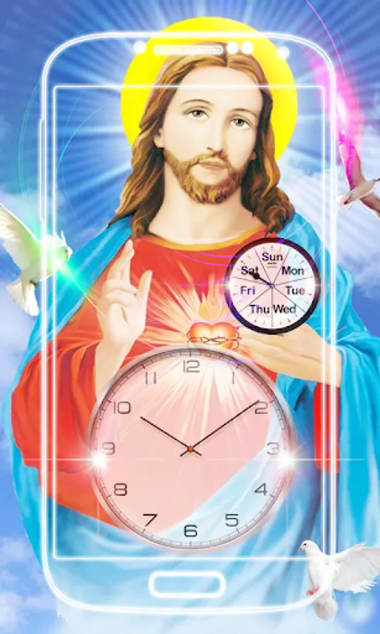 Jesus clock Live wallpaper contain different types amazing clocks and awesome backgrounds.Jesus Clock Live Wallpaper is highly customisable live wallpaper application.Choose Jesus Clock as your Live Wallpaper to give a rich & patriotic look to your mobile.Decorate your home screen with this amazing Jesus analog clock live wallpaper.