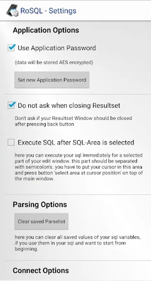 - Android 4.4 User and lower have to set compatibility mode 8 (oracle10 and above) as described below: