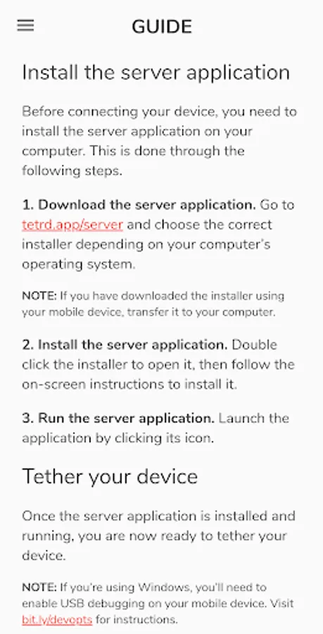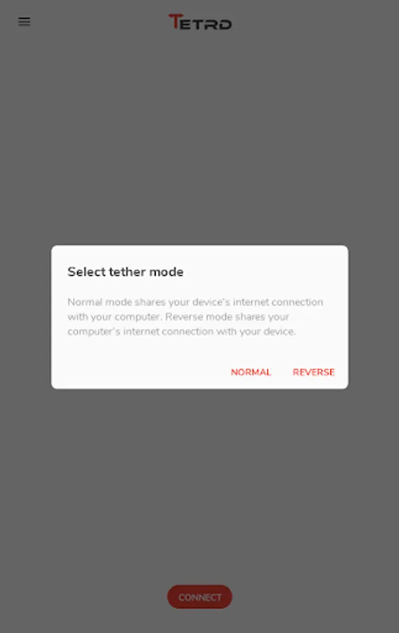 Tetrd is a simple tool that allows you to share your internet connection from your device to your PC and vice versa through a USB cable.