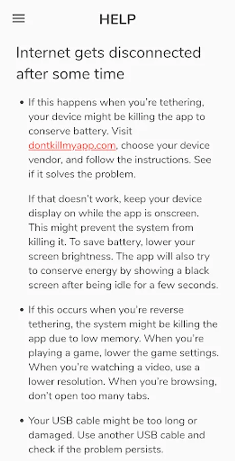 Note: Some apps only check for wifi or cellular connectivity and will not have internet access when reverse tethering.