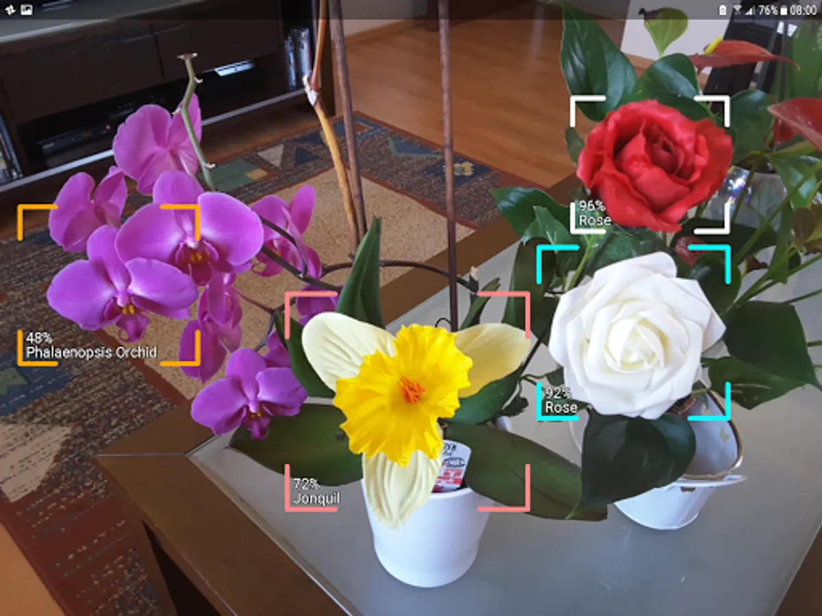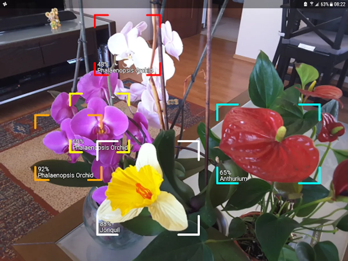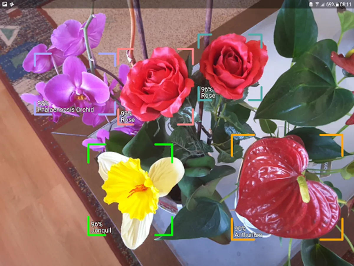 The application uses latest AI and machine learning achievements to identify flowers species. Identified flowers are highlighted on the screen and flower name is displayed. After touching on the identified flower a page is opened with detailed information about the species, classification, characteristics, geographical distribution, care instructions and examples of usage.