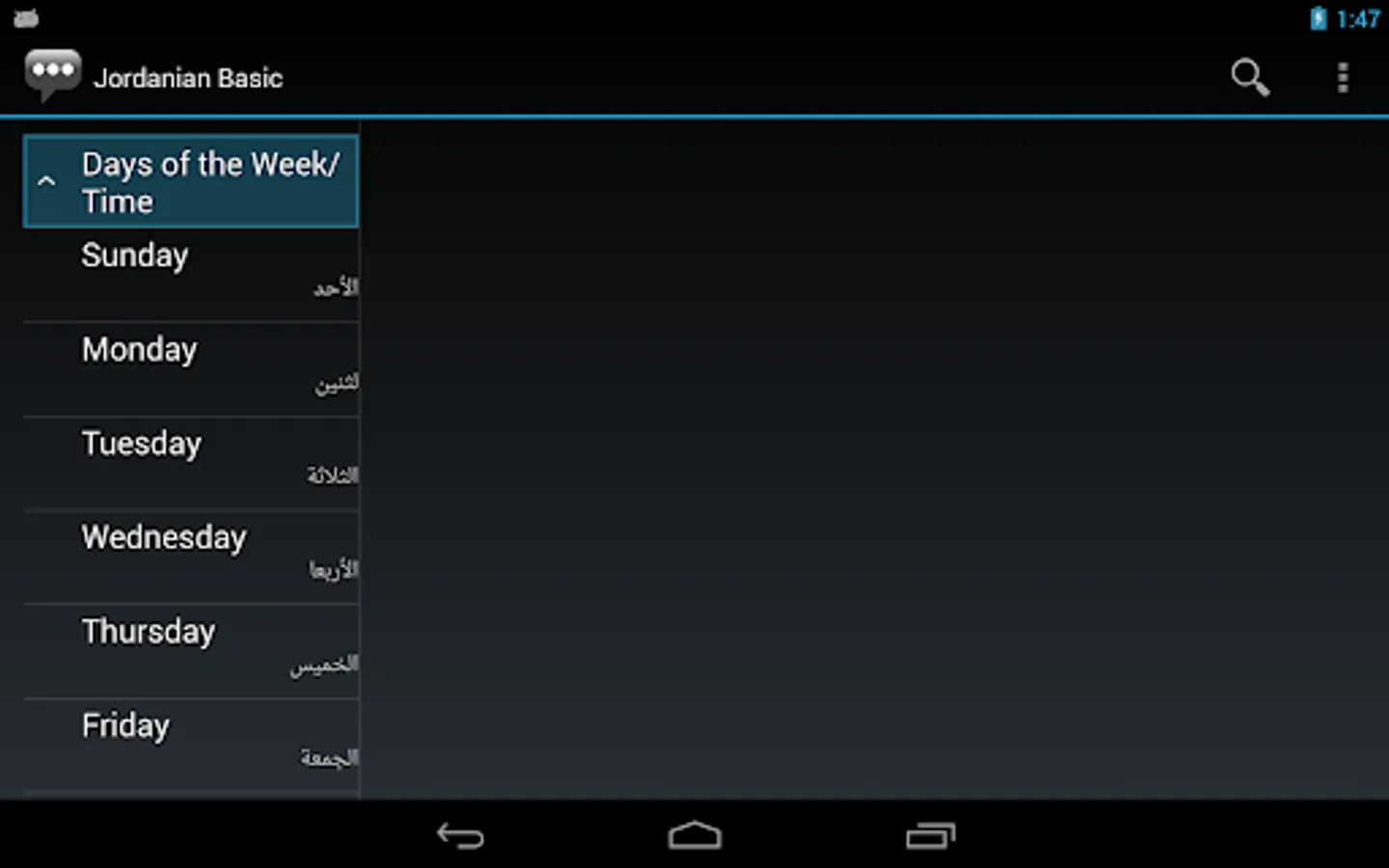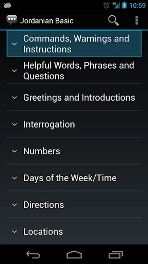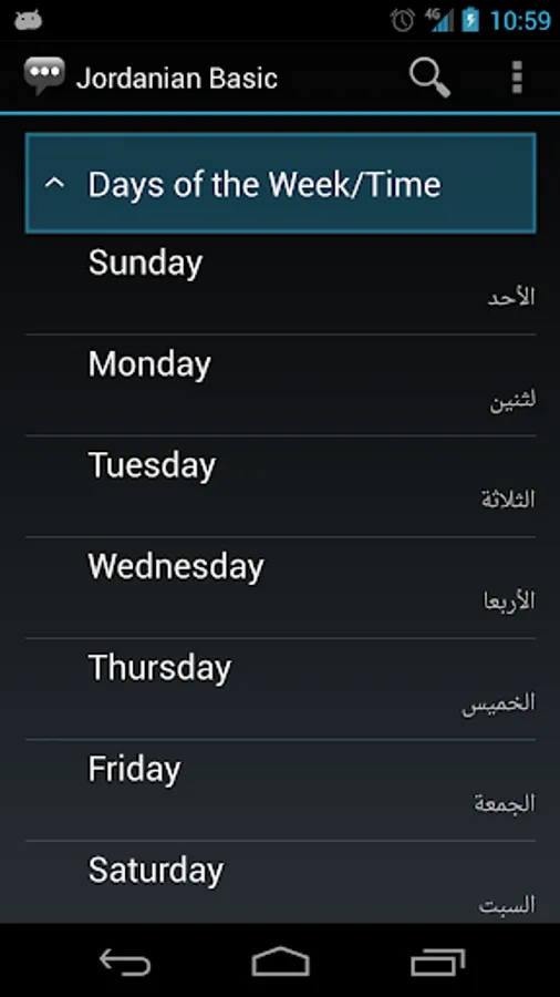 Using this app, you can select an English phrase and view its translation and how to pronounce it in Jordanian.