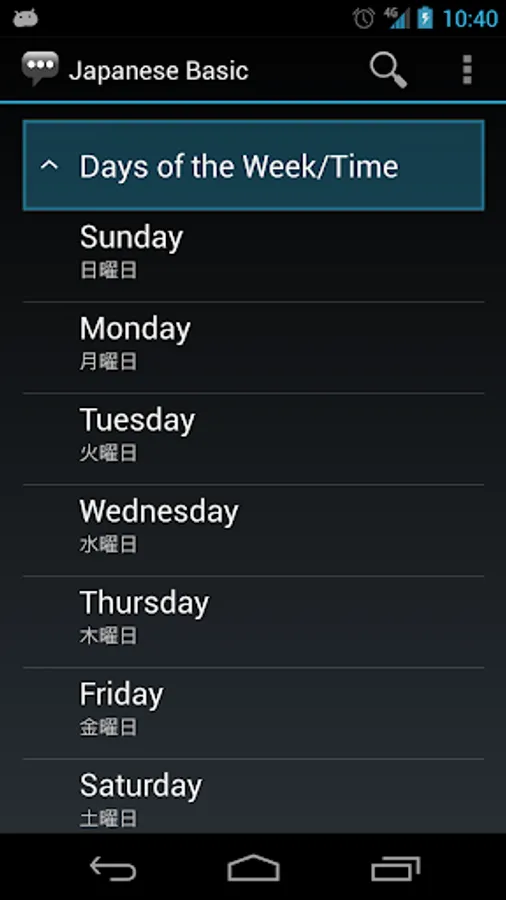 Using this app, you can select an English phrase and view its translation and how to pronounce it in Japanese.