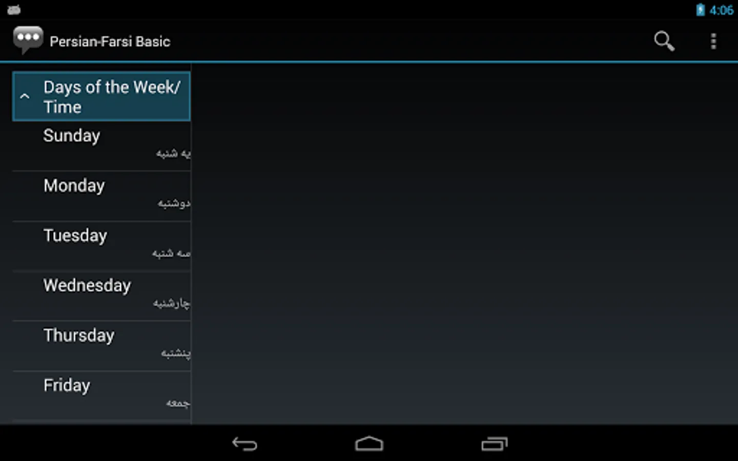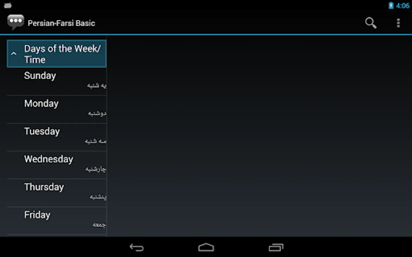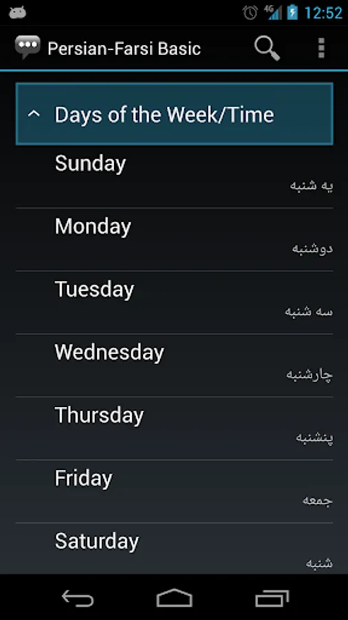 Using this app, you can select an English phrase and view its translation and how to pronounce it in Persian-Farsi.
