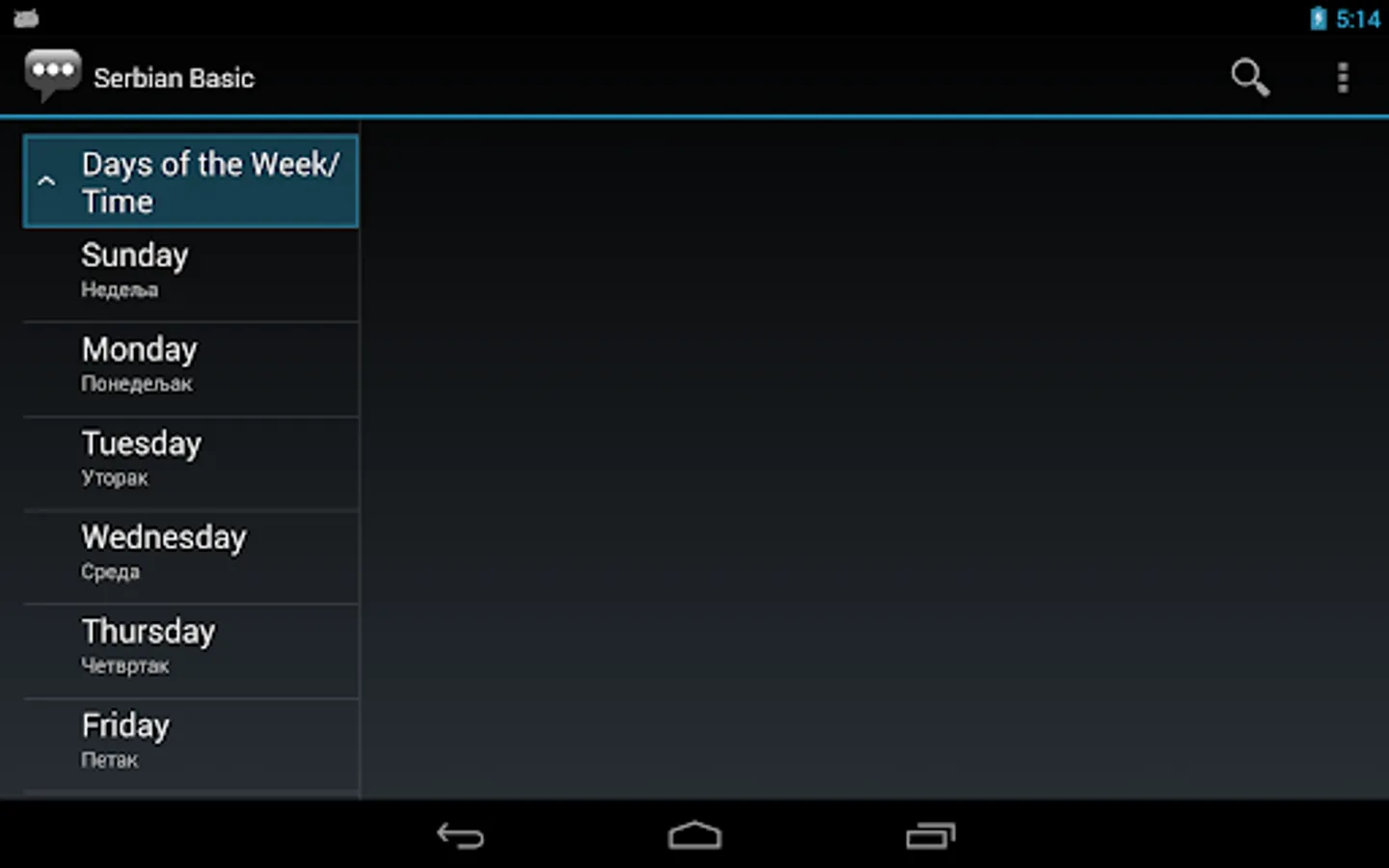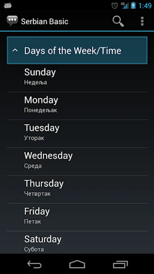 Using this app, you can select an English phrase and view its translation and how to pronounce it in Serbian.