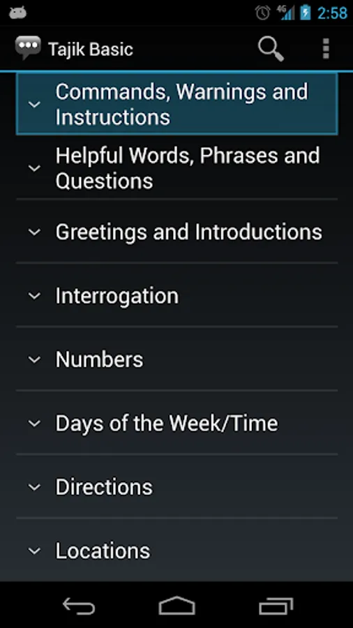 This app was originally developed as an entry to the 2010 CIO/G6 "Apps for the Army" competition, and it is based on the modules publicly available online from the U.S. Defense Language Institute. While this app's subject matter relates mainly to military topics, the app is broadly useful with content relating to a range of topics.