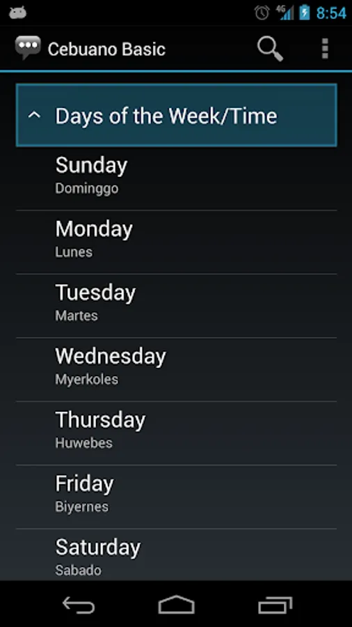 Using this app, you can select an English phrase and view its translation and how to pronounce it in Cebuano.