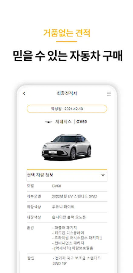 With the quality of estimate service, you can get a lot of information such as catalogs/price lists/option explanations by vehicle type that you can only see at the showroom when writing a quote, and you can eliminate the hassle of having to go to the showroom to get a quote.
