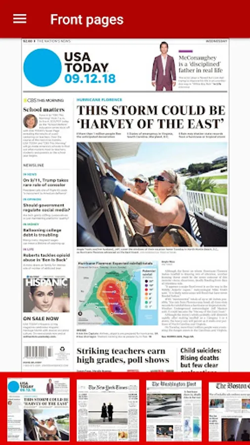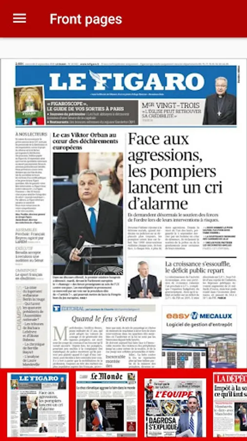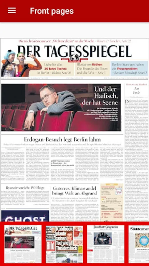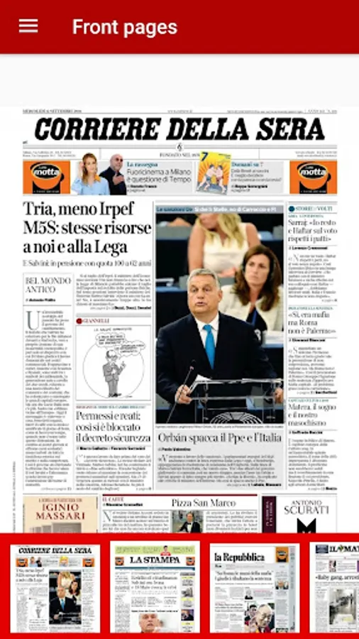 More than 100 front pages of newspapers from all over the world, updated day by day to create your virtual newsstand. A vast and constantly updated catalog with more and more incoming newspapers. Download the free app now!